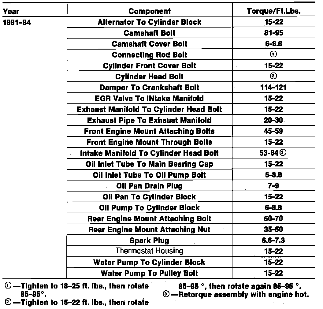 Tightening Specifications:
