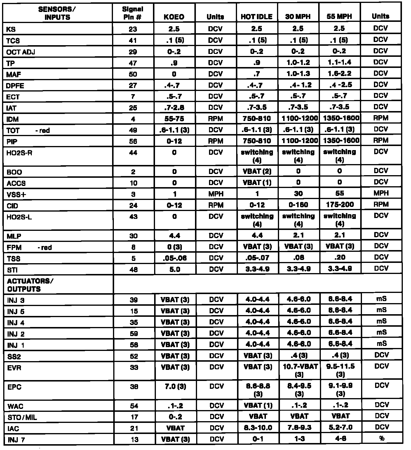 *** Updated by TSB# 9324B15, dated 12/92Diagnostic Reference Values: