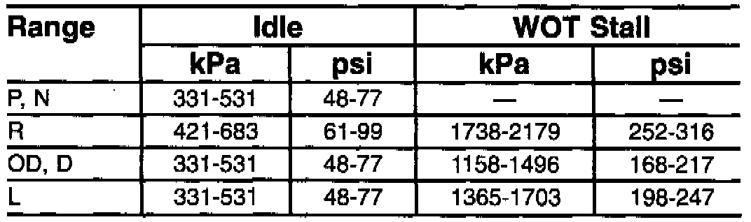 3. Start engine and note line pressures. If line pressure is not as specified in the Line Pressure Specification Chart, perform Air Pressure Test and service main control system.