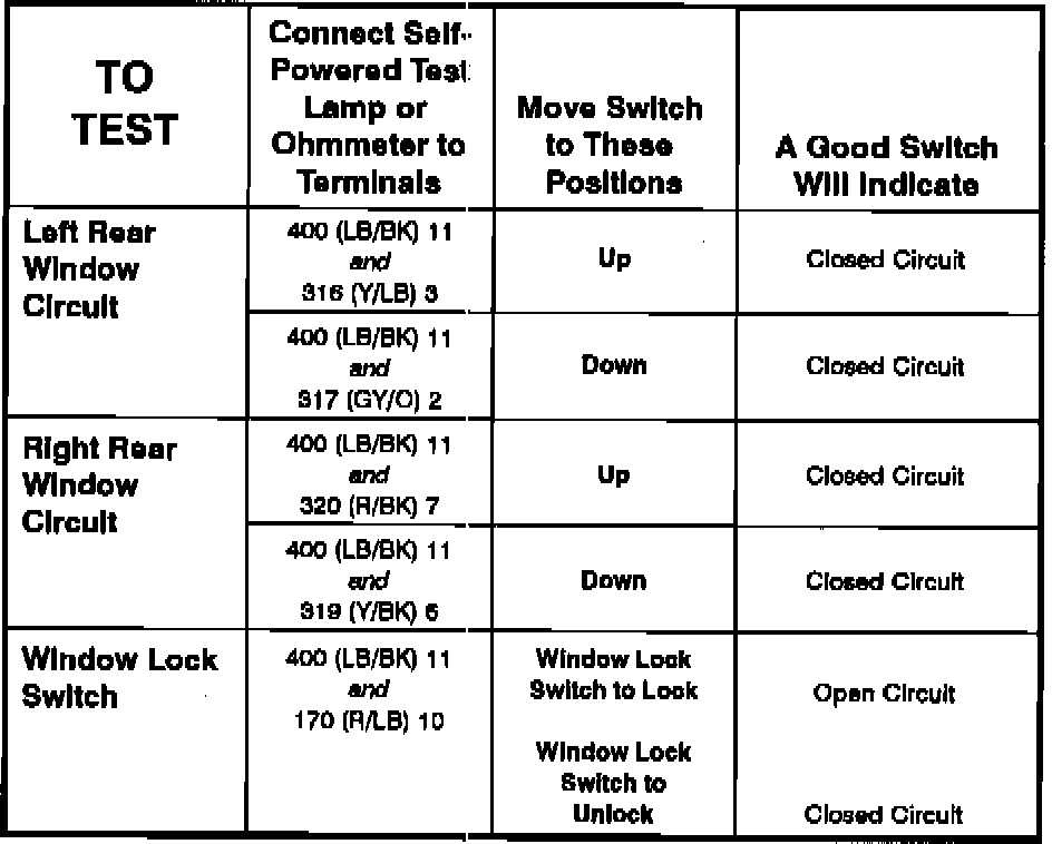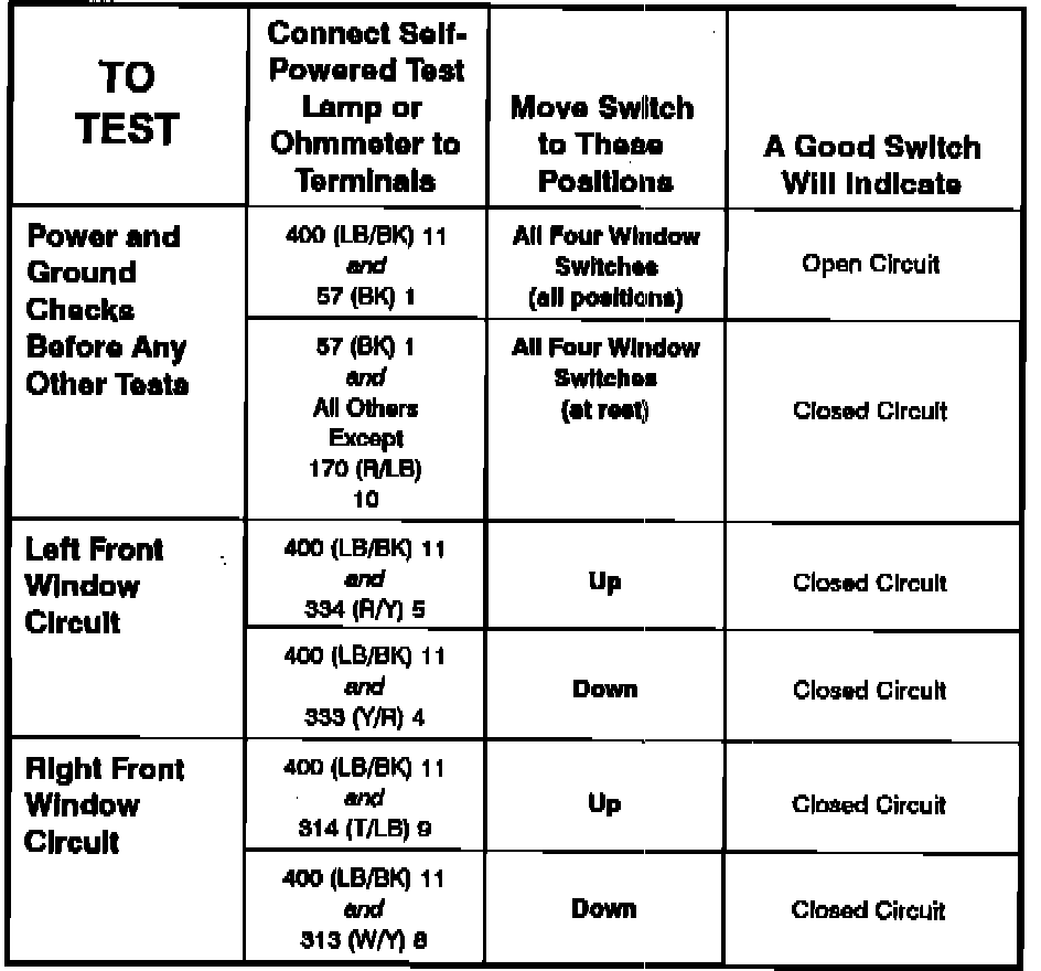Power Window Switch: Testing and Inspection