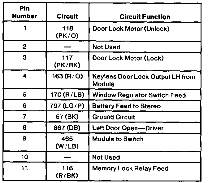 Driver Door Module Connector C3