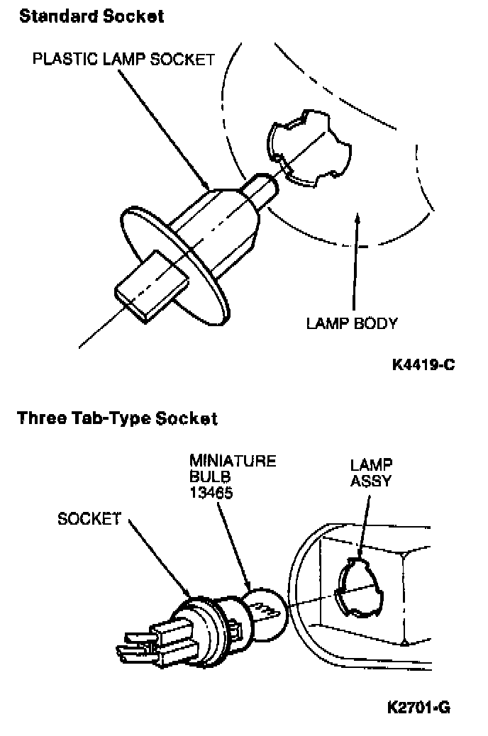 BULB - EXTERIOR ILLUMINATION - REMOVAL AND INSTALLATION1. NOTE: Make sure appropriate lamp switch is off. Refer to appropriate lamp removal and installation procedure to access bulb(s).