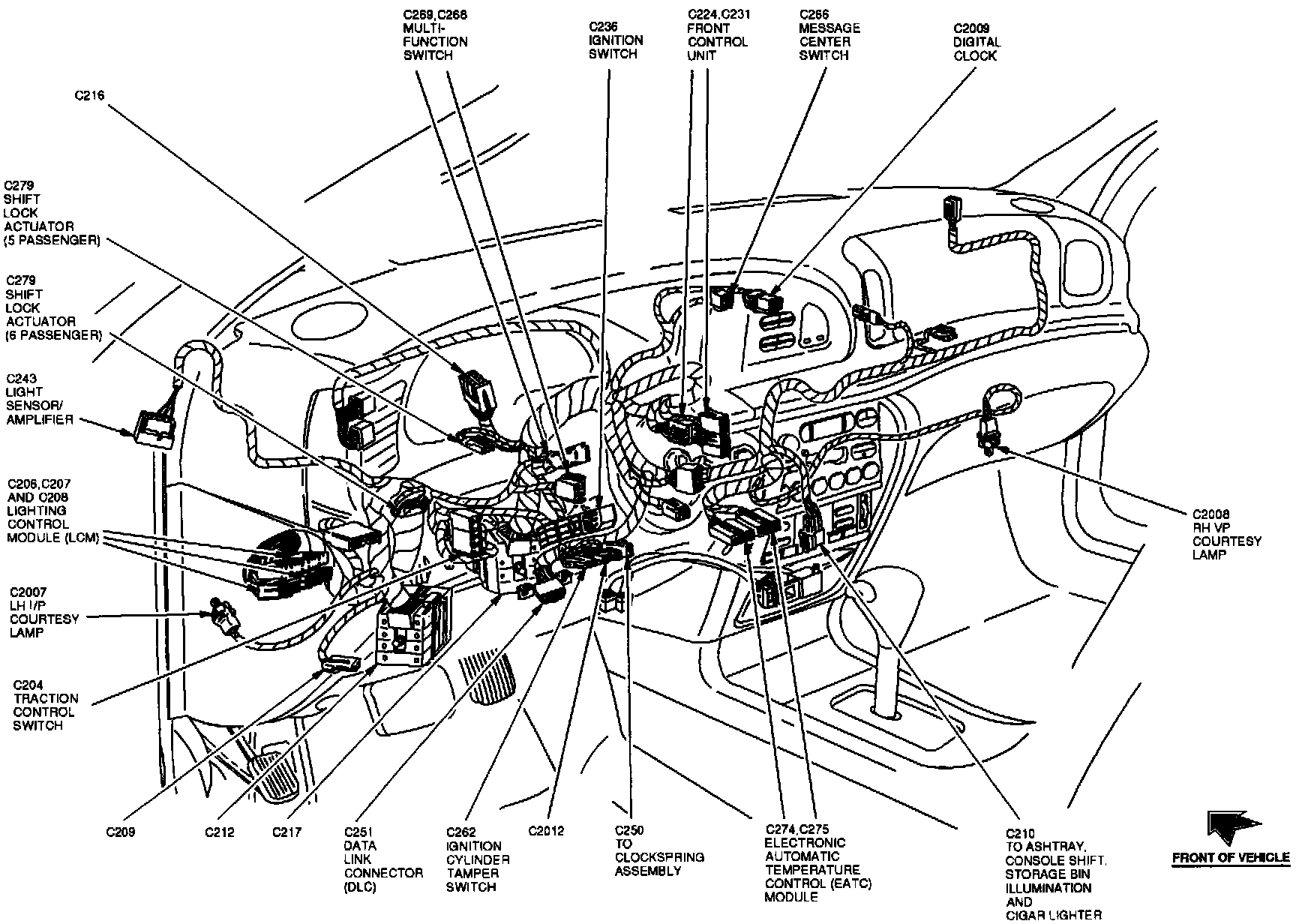 The Lighting Control Module is located at the left side of the instrument panel.