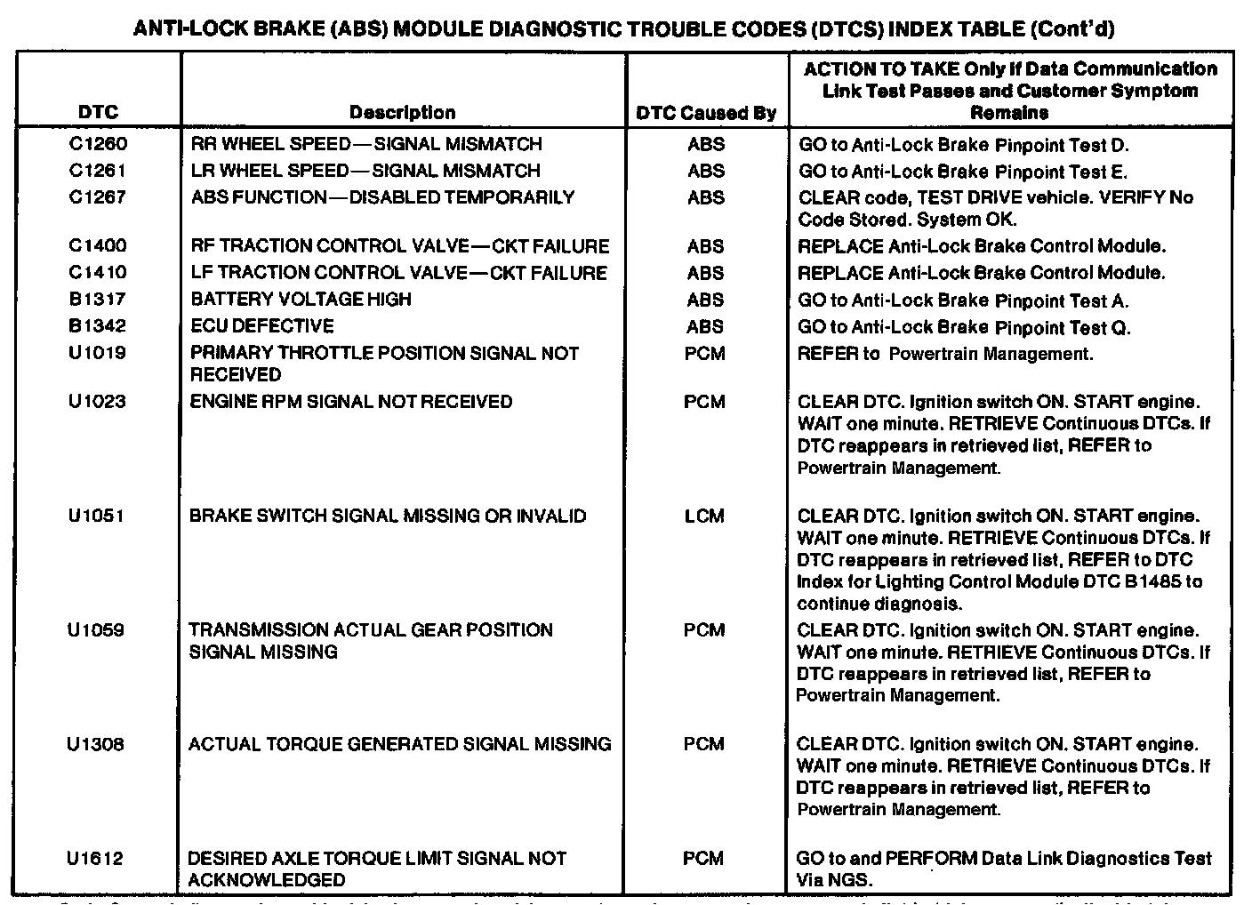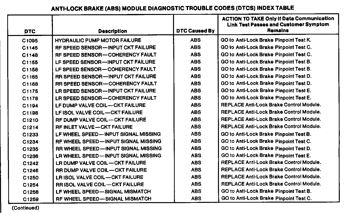 Antilock Brake System DTC Index