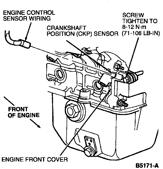 3. Position CKP sensor and install retaining screw. Tighten to 8-12 Nm (71-106 lb in).