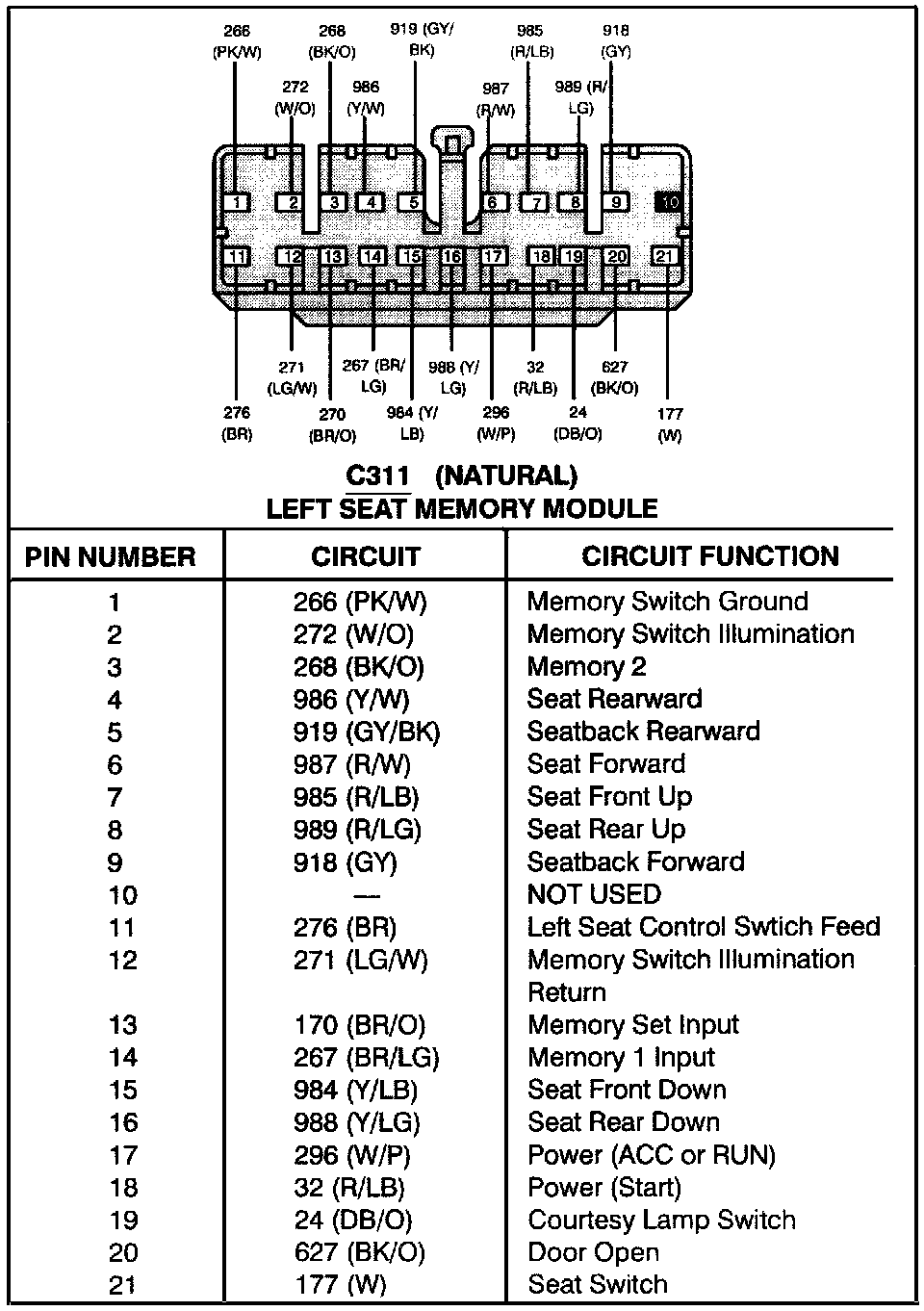 Left Seat Memory Module (C311):