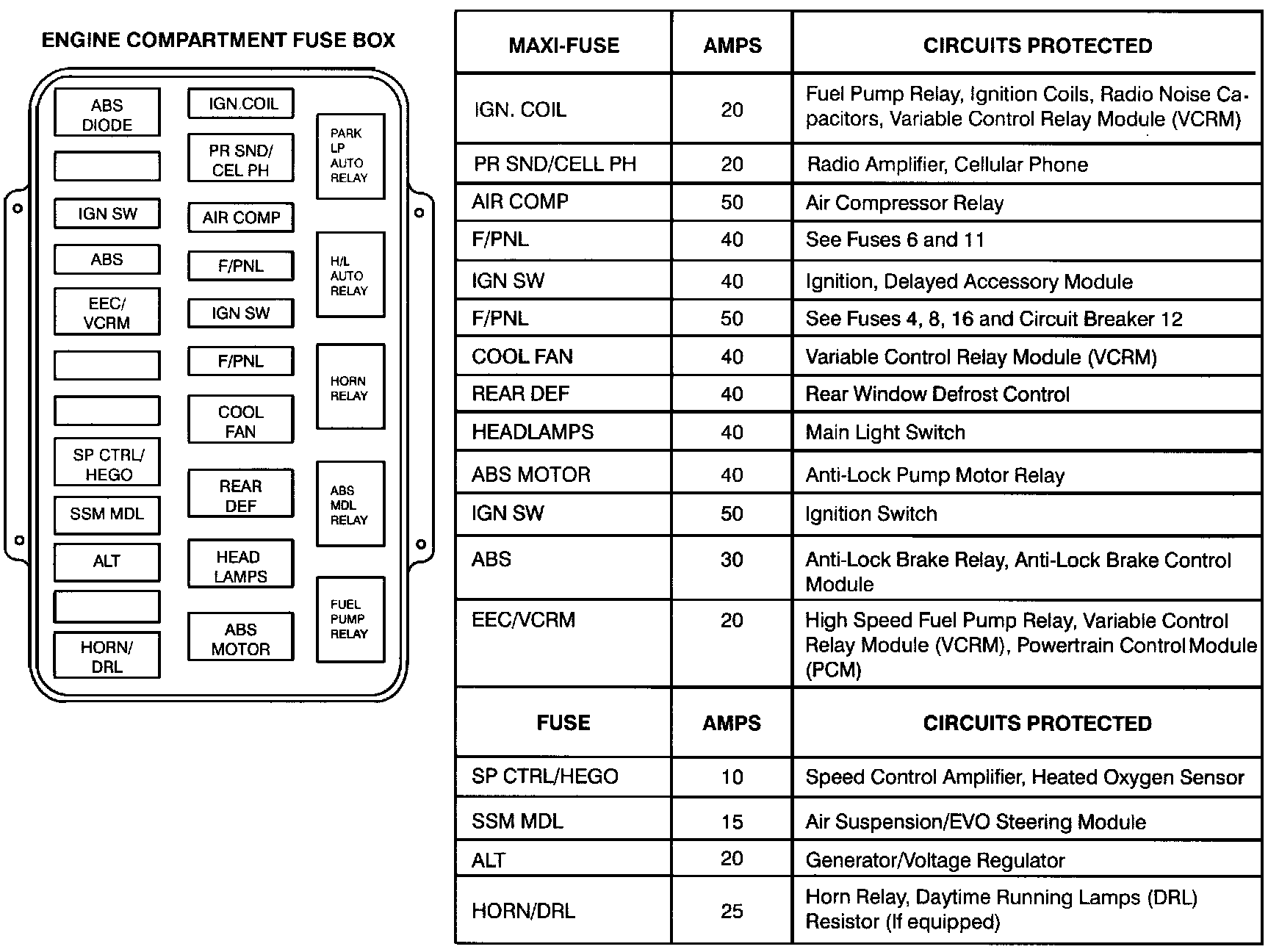 Circuit Protection/Fuse Panel (Engine Compartment Fuse Box):