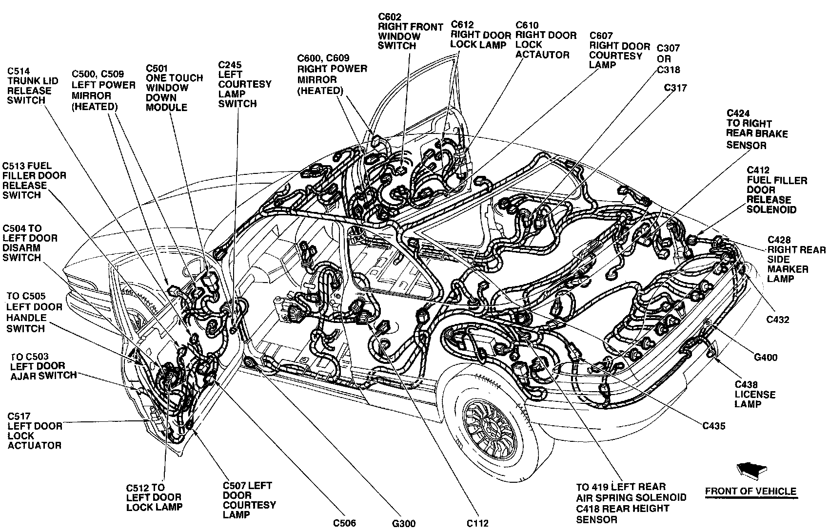 The One Touch Window Down Module is located at the top front of LH front door.