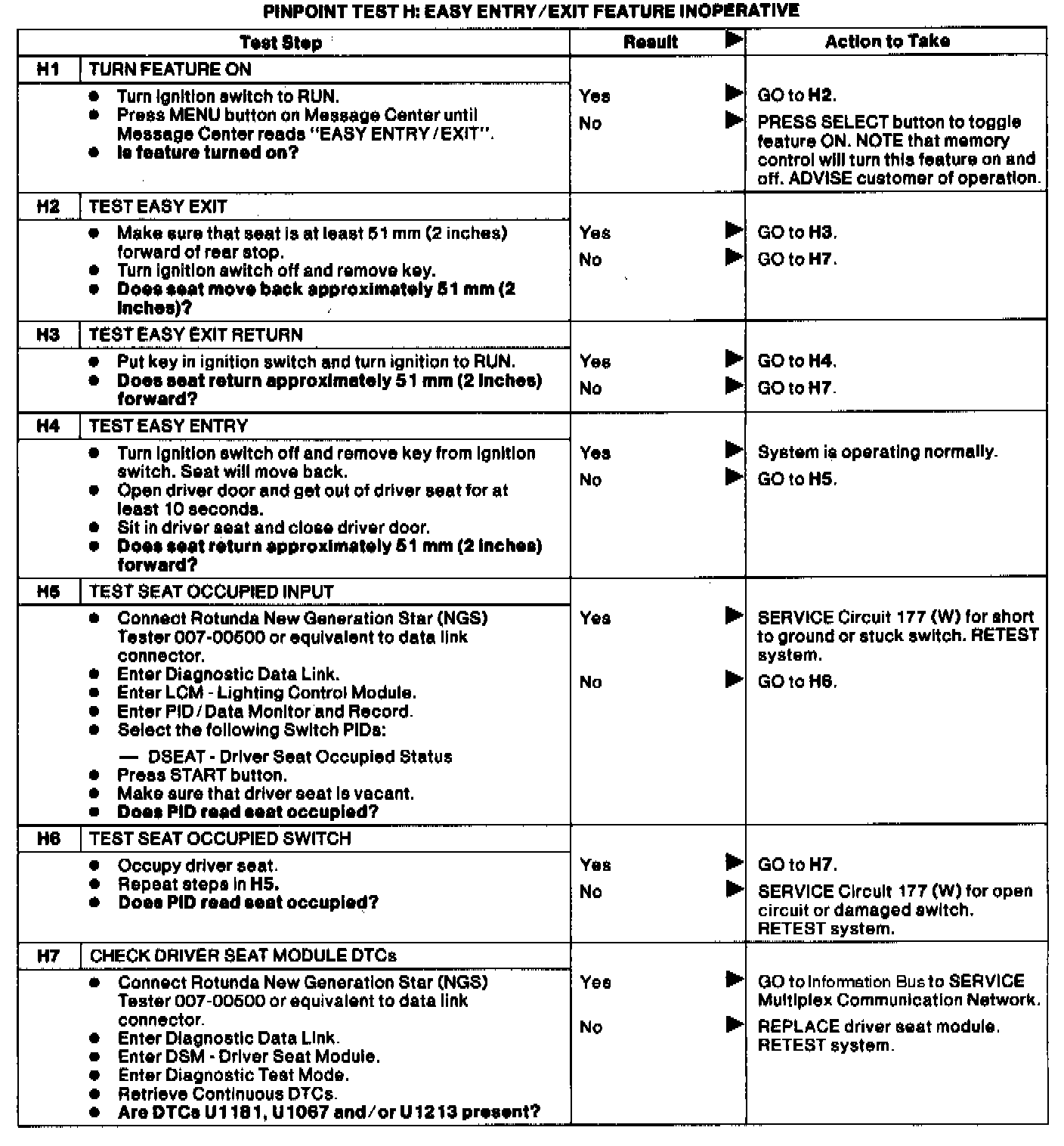 Test H: Easy Exit/Easy Entry Does Not Operate Properly