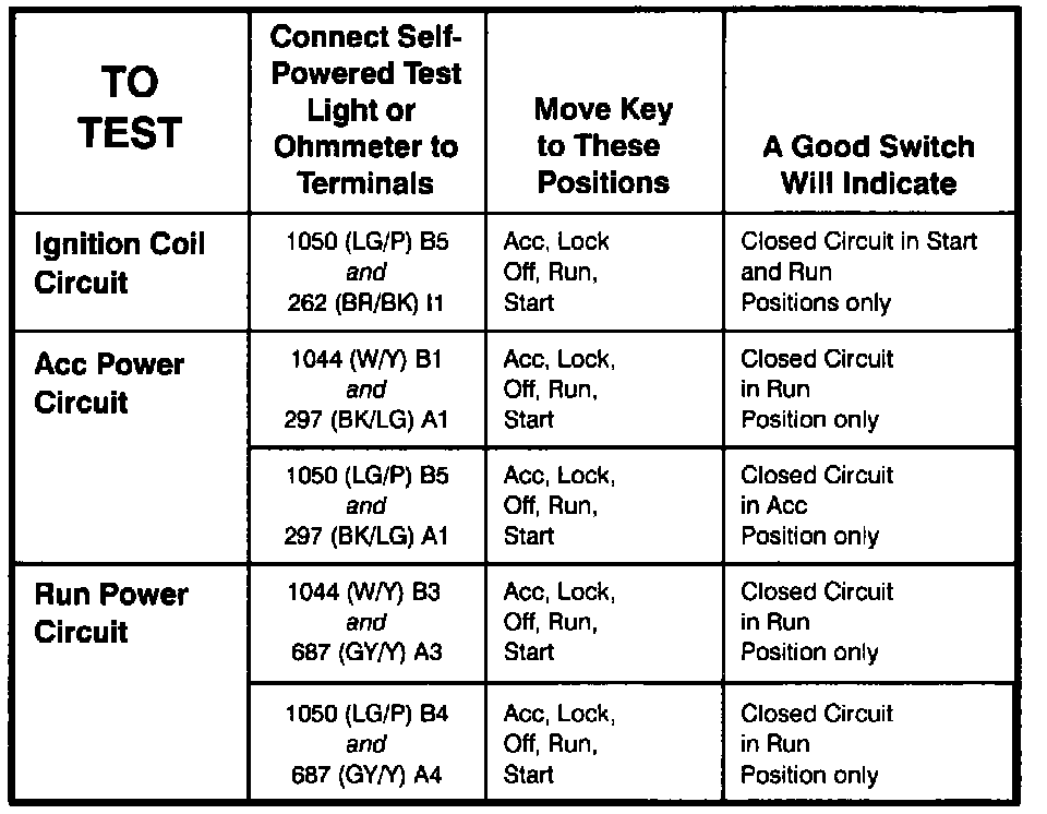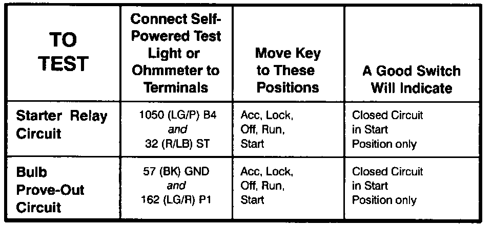 Ignition Switch - Component Testing Procedure (Part 2 Of 2):
