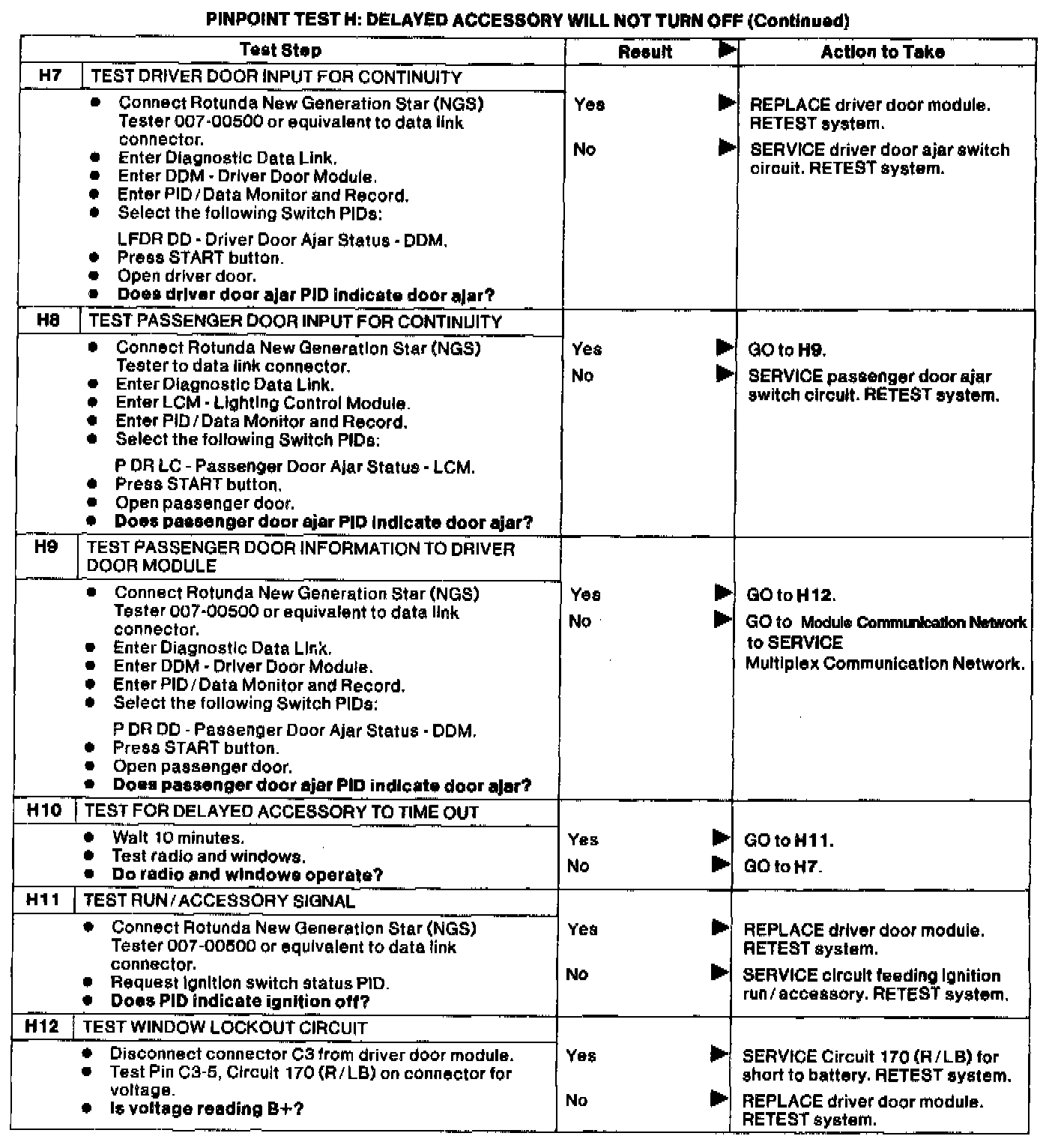 Pinpoint Tests H7 - H12: