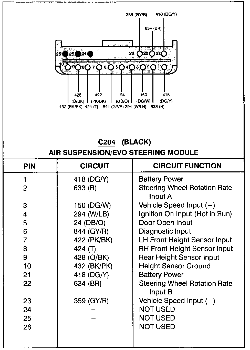 Air Suspension/Electronic Variable Orifice Steering Module (C204):