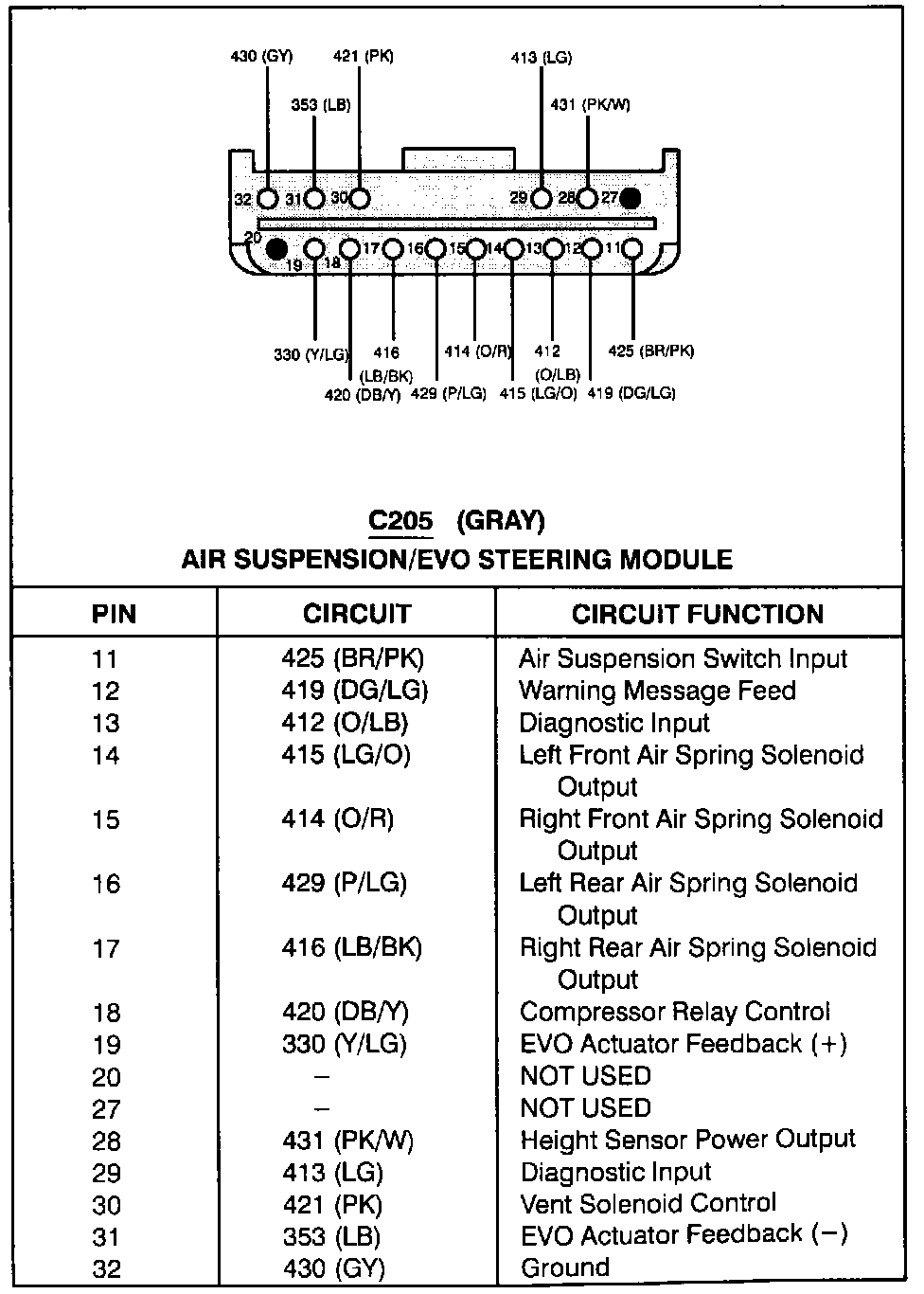 Air Suspension/Electronic Variable Orifice Steering Module (C205):