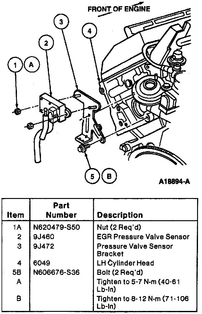 6. To install, reverse removal procedure. Tighten EGR backpressure transducer bracket bolts to 8-12 Nm (71-106 lb in). Tighten EGR backpressure transducer retaining nuts to 5-7 Nm (40-61 lb in).