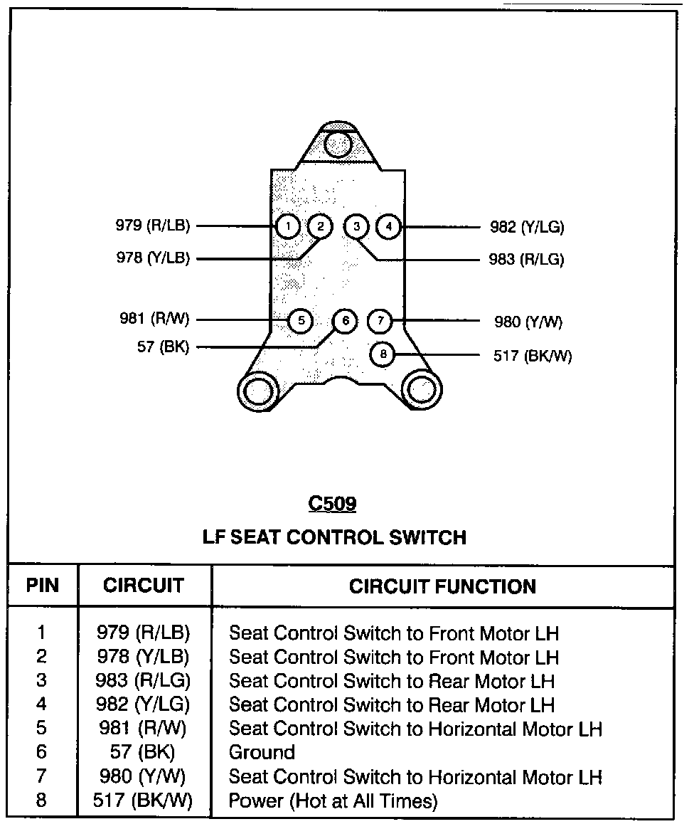 LF Seat Control Switch: