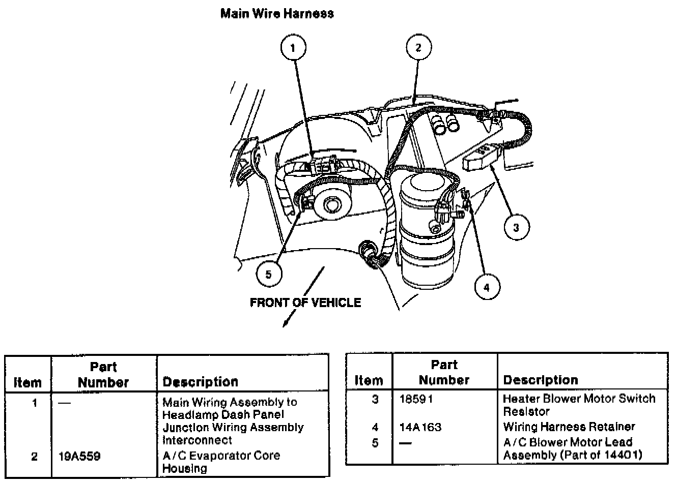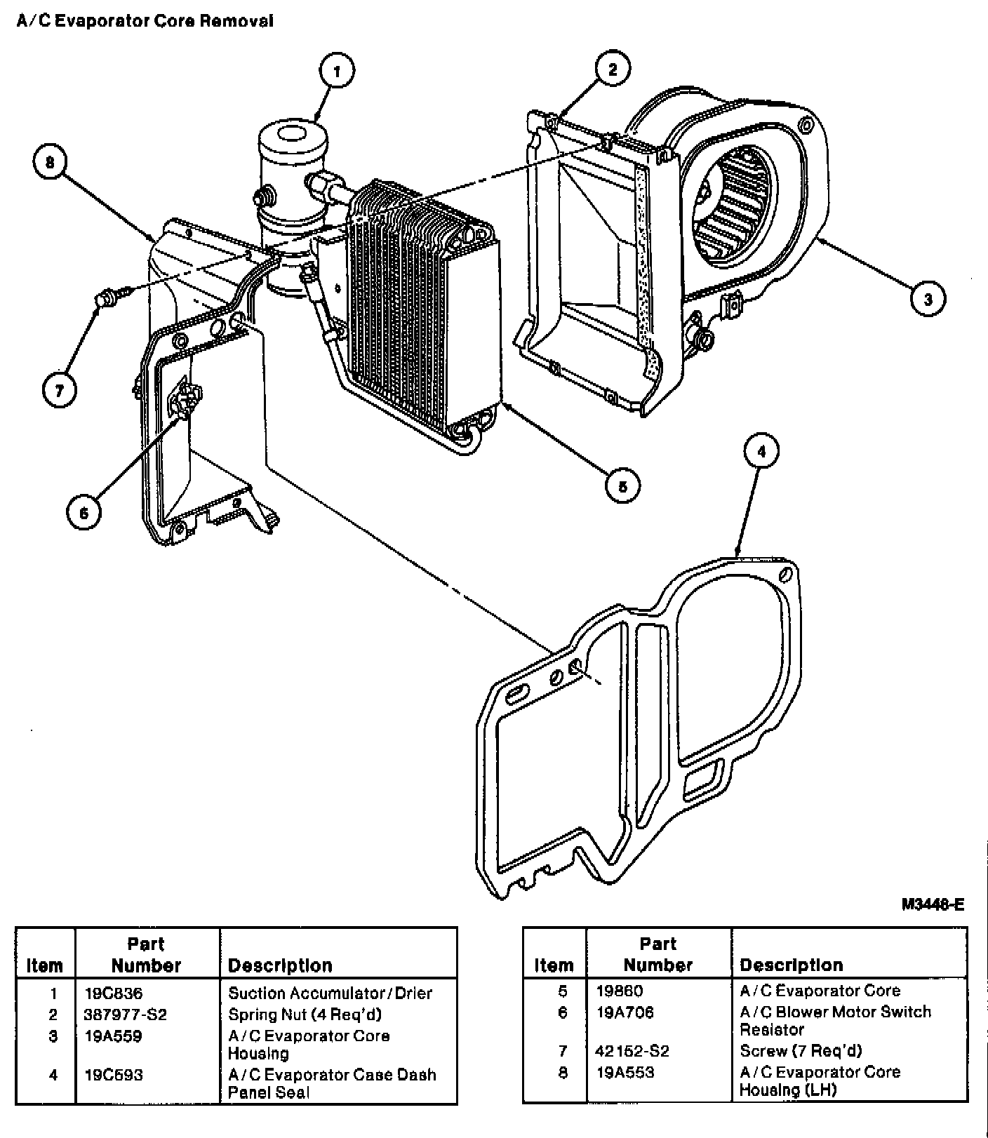 1. Remove the A / C evaporator core housing (19A559) from the vehicle as outlined.