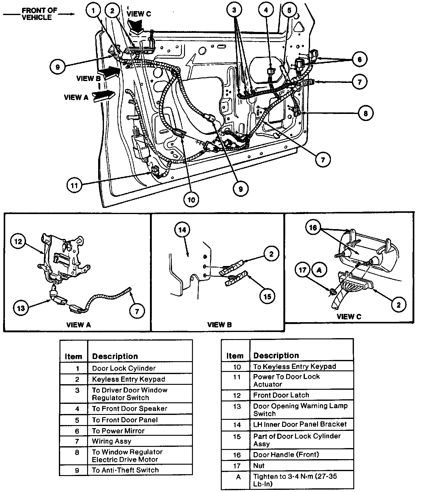 2. Tighten keyless entry keypad retaining nut to 3-4 Nm (27-35 lb-in).