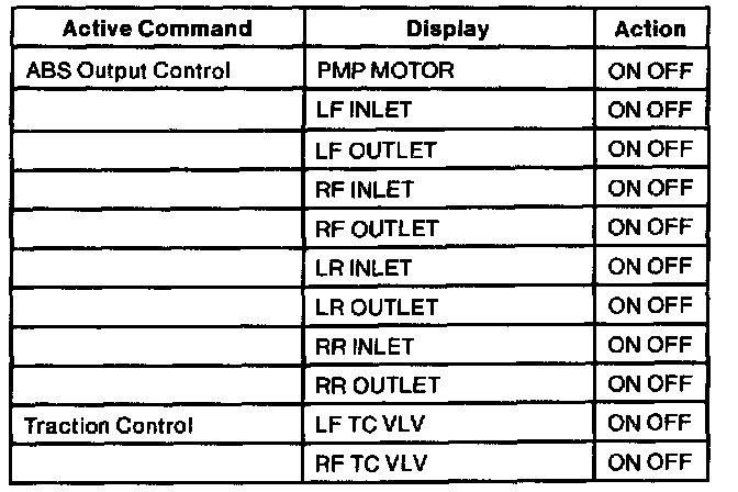 Anti-Lock Brake System (ABS) Module Active Command Index