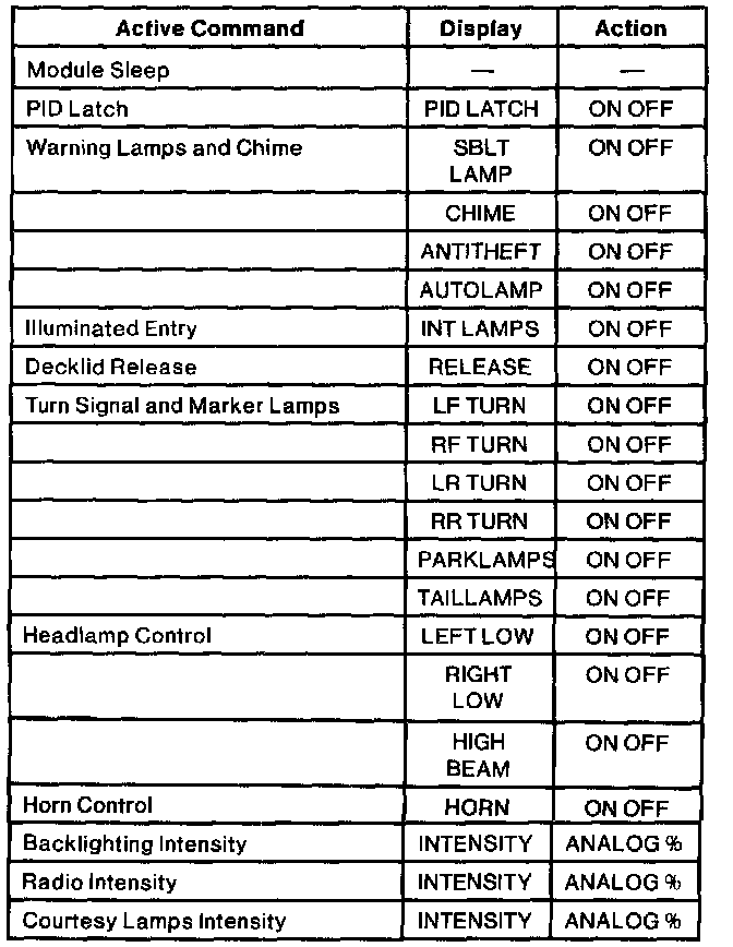 Lighting Control Module (LCM) Active Command Index