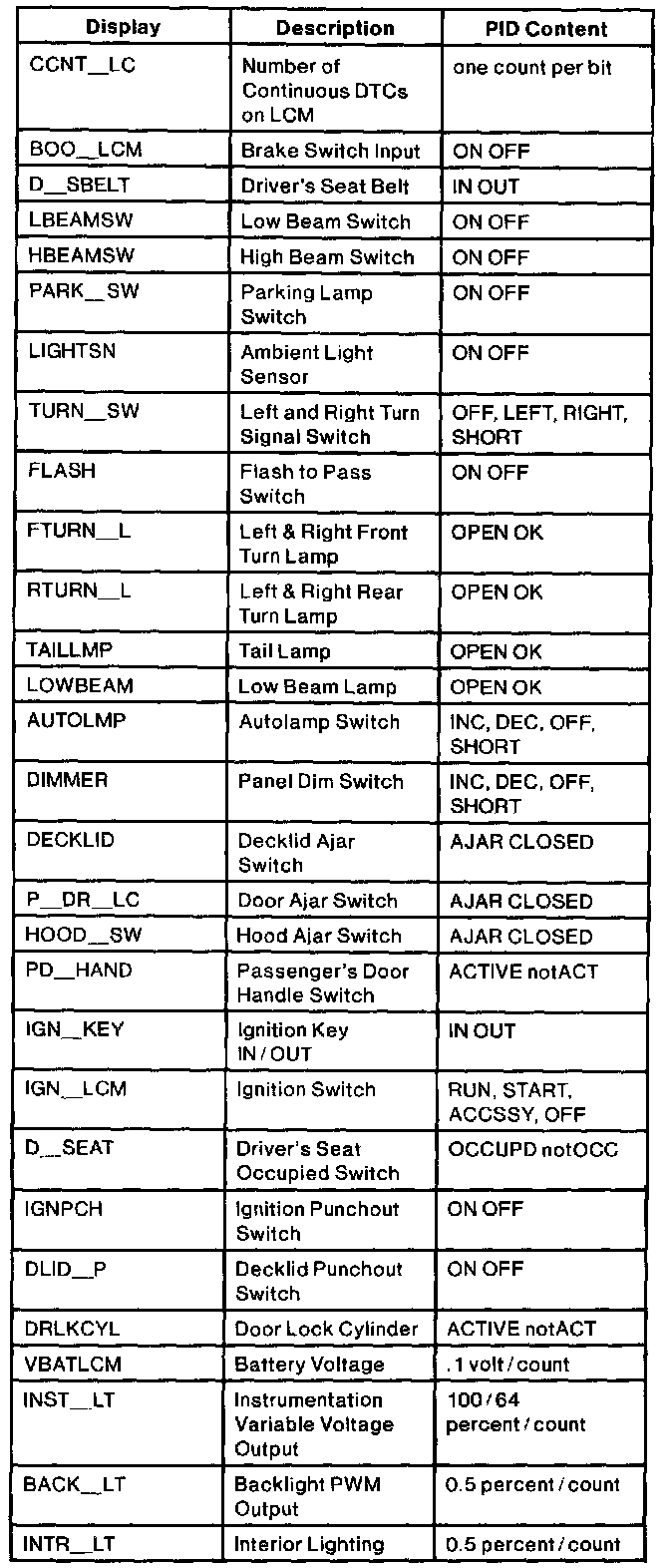 Lighting Control Module (LCM) PID Index