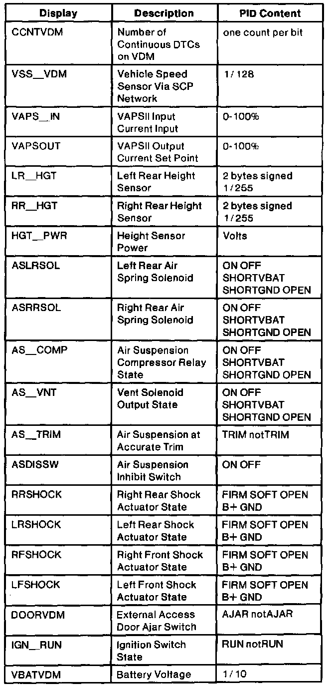 Vehicle Dynamics Module (VDM) PID Index