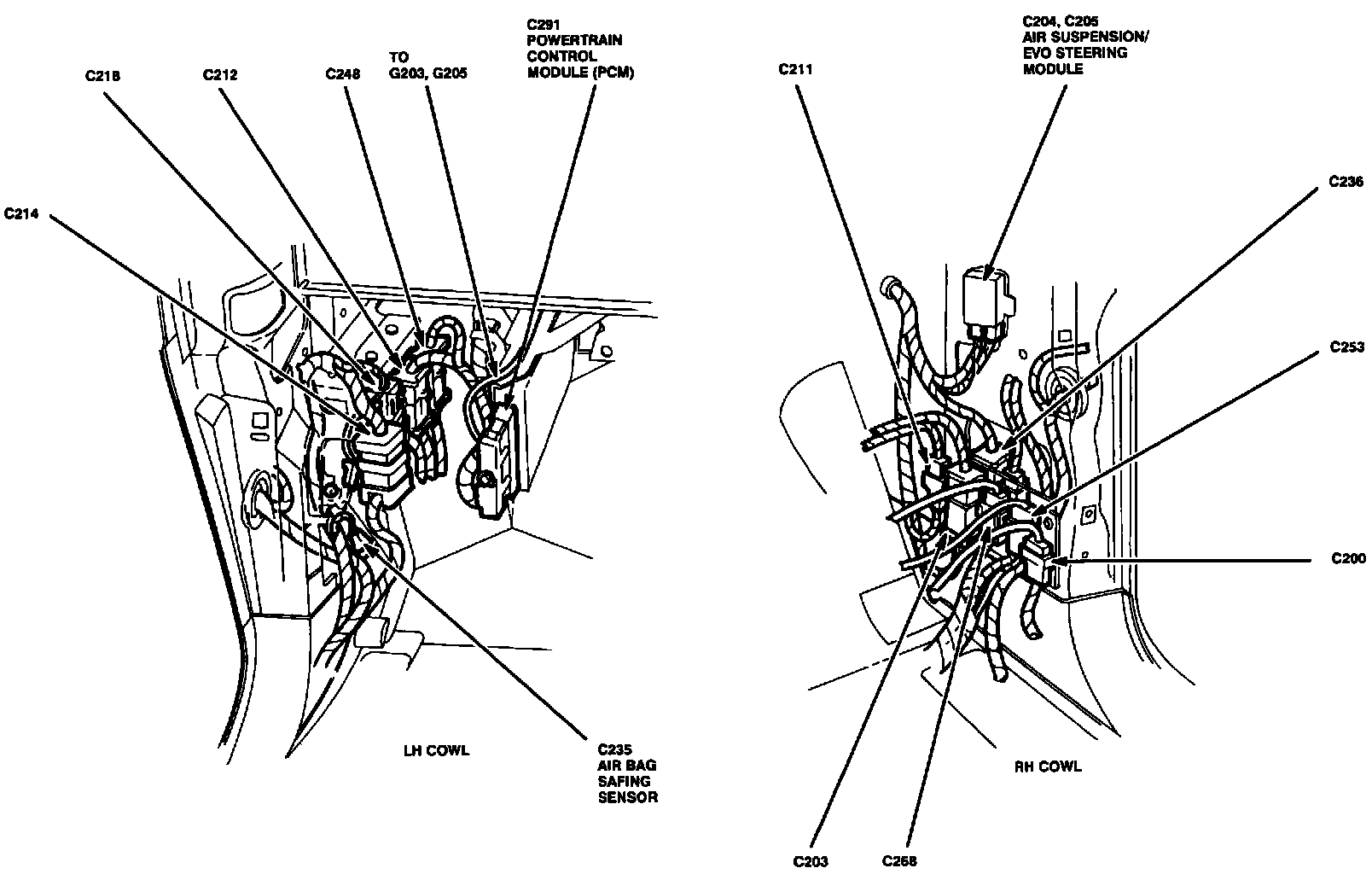 The Powertrain Control Module is located behind LH side of the instrument panel, on LH side of safety wall.