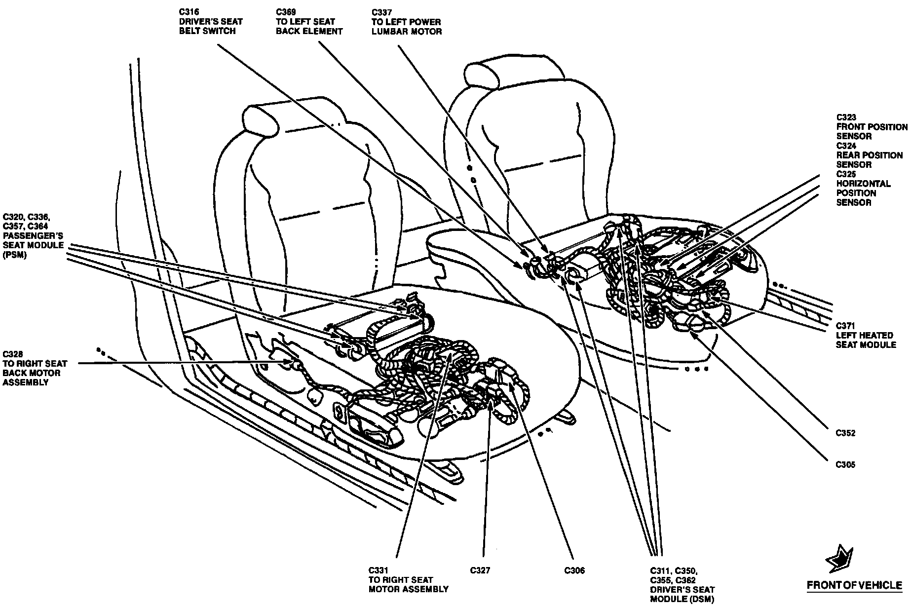 The Driver's Seat Module is located under LH front seat.