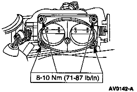 4. Tighten two intake manifold-to-lower intake manifold retaining bolts to 8-12 Nm (71-106 inch lbs.).