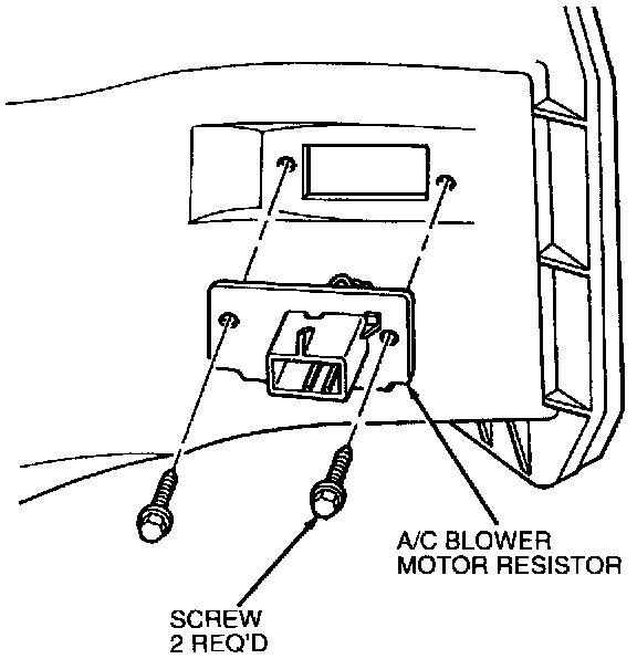 2. Remove the two resistor assembly retaining screws securing the heater blower motor switch resistor to the A/C evaporator core housing assembly.