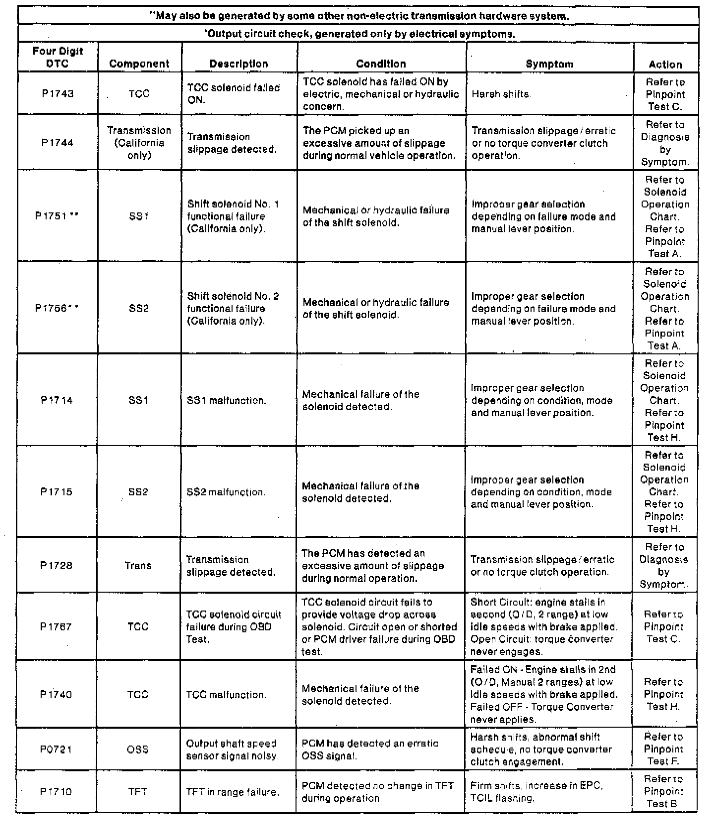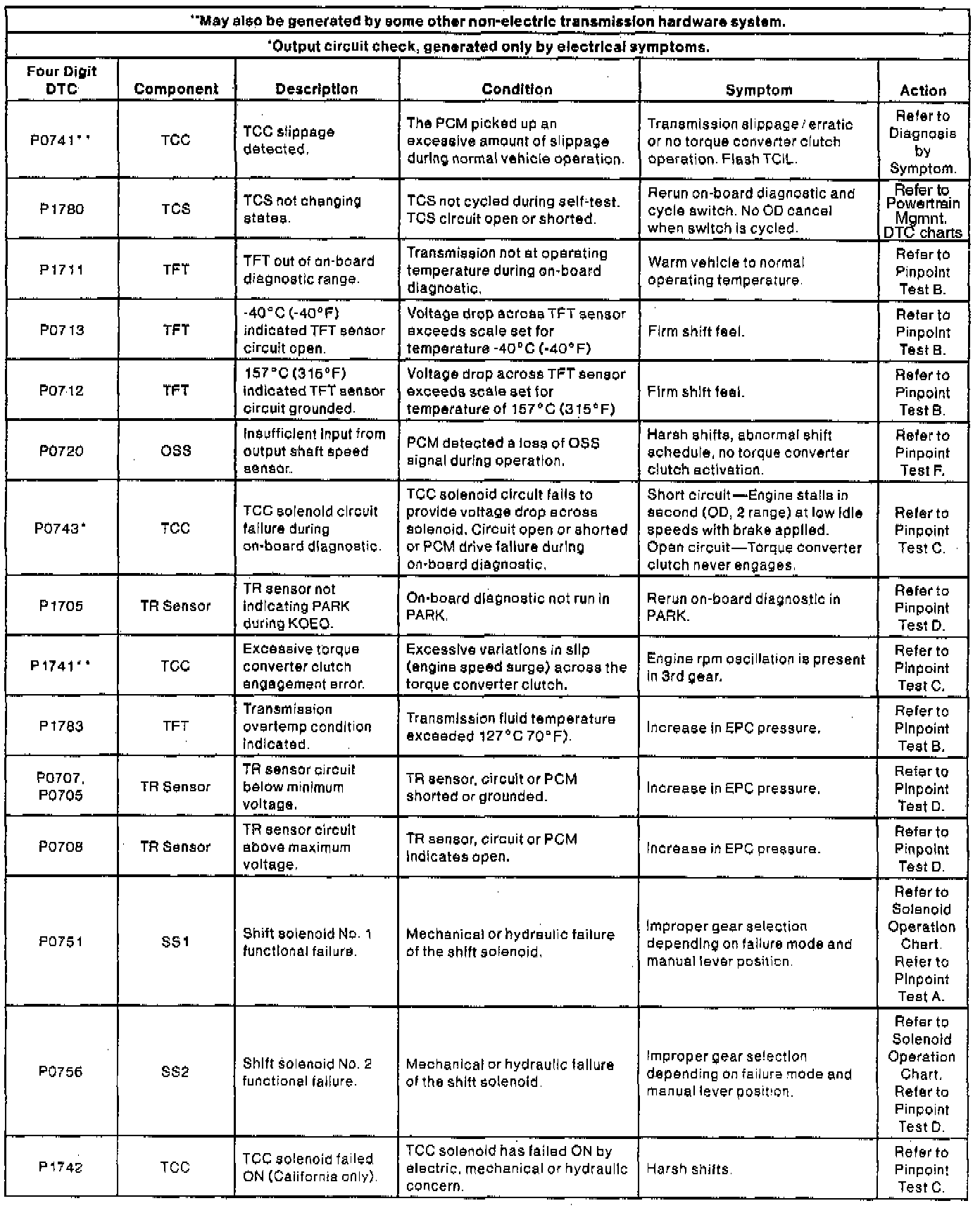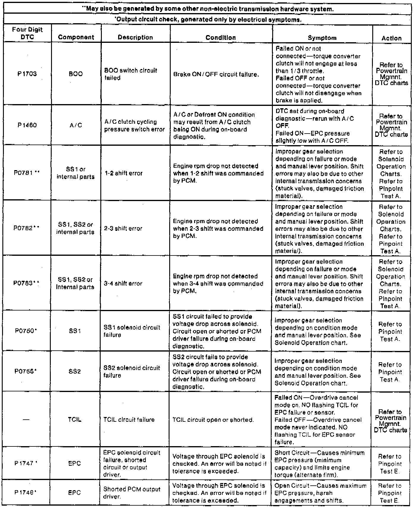NOTE: When a DTC action contains a reference to Powertrain Management, go to the DTC index under Powertrain Management/Computers and Control Systems/System Diagnosis and follow the pinpoint test instructions for that DTC. Testing and Inspection