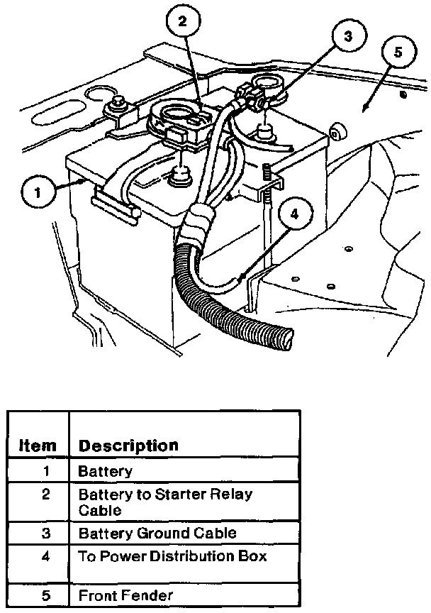 1. Clean cable terminals and battery hold down clamp with a wire brush. Replace all cables or parts that are worn or frayed.