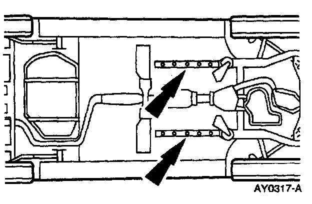 WARNING: WHEN HOISTING AT THE LIFT POINTS, ESPECIALLY THE FRONT FRAME LIFT POINTS, BE CAREFUL NOT TO CONTACT THE BRAKE LINES OR THE FUEL LINES.