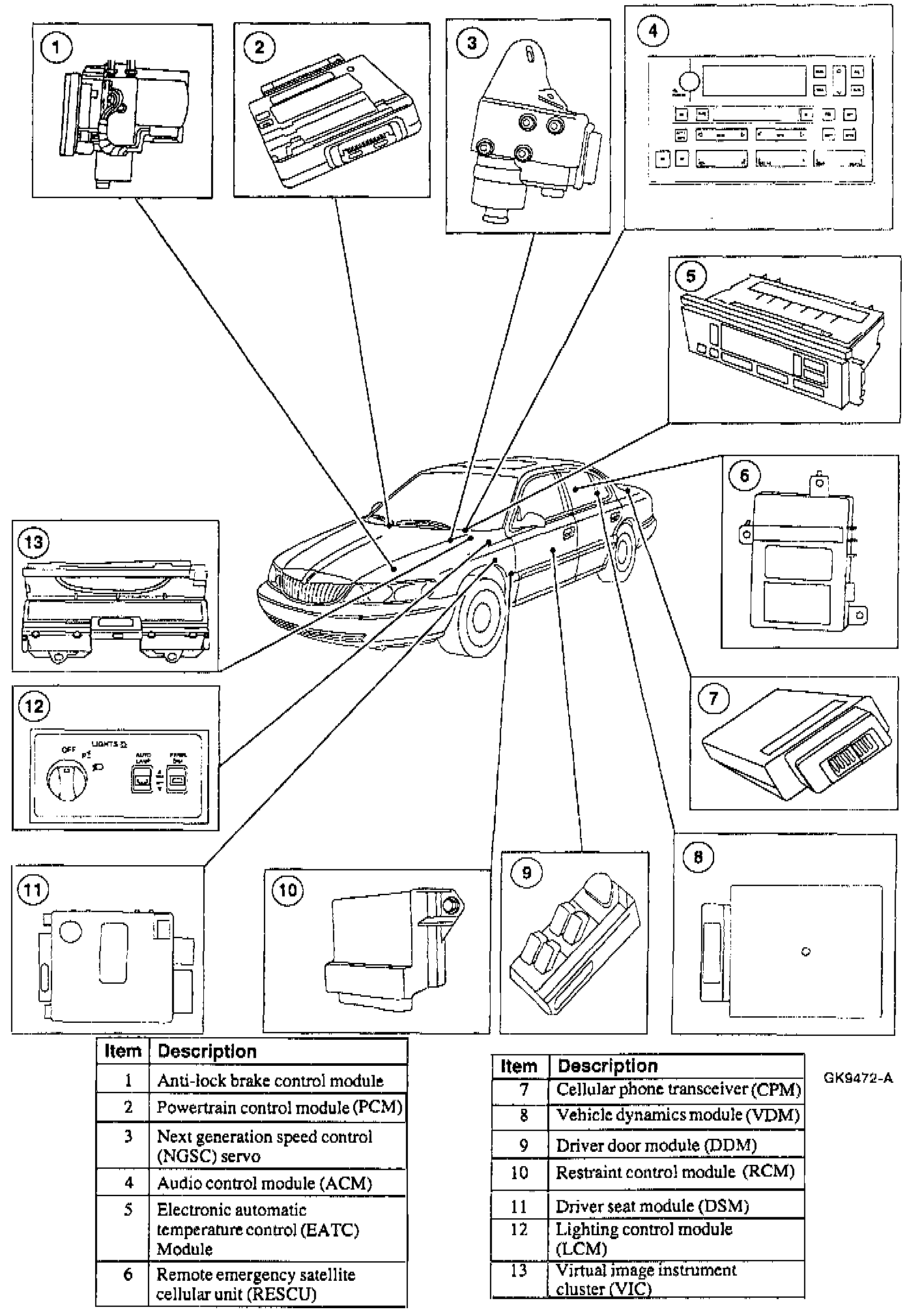 The Audio Control Module (ACM) is connected to the SCP communication network and also to the Audio Control Protocol (ACP) communication network. The ACM communicates with the compact disc and the cellular phone transceiver.