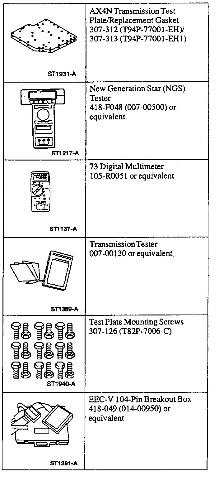 Special Tools:
