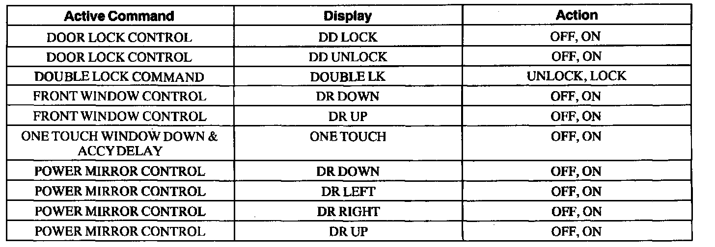 Driver Door Module (DDM) Active Command Index