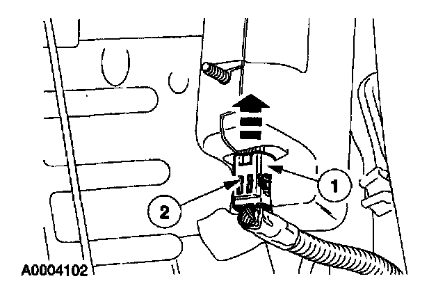 2 Release the two connector tabs (one shown) by pushing in on them and disconnect the side air bag module.