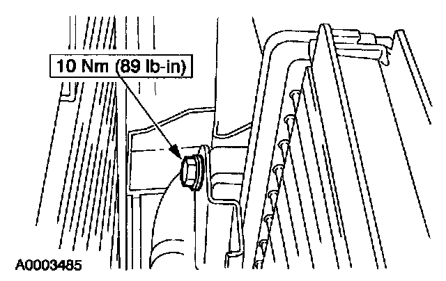 11. Disconnect the high pressure cooling fan bracket and line.