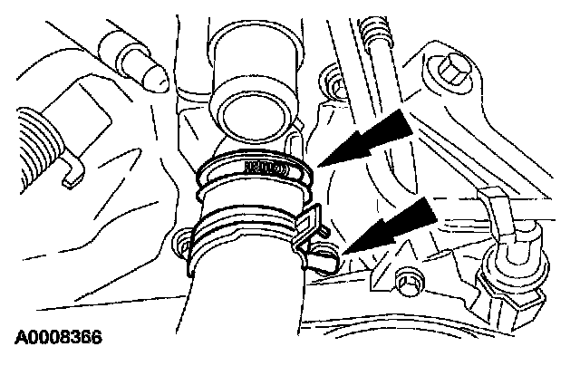 7. Disconnect the lower radiator hose from the thermostat housing.