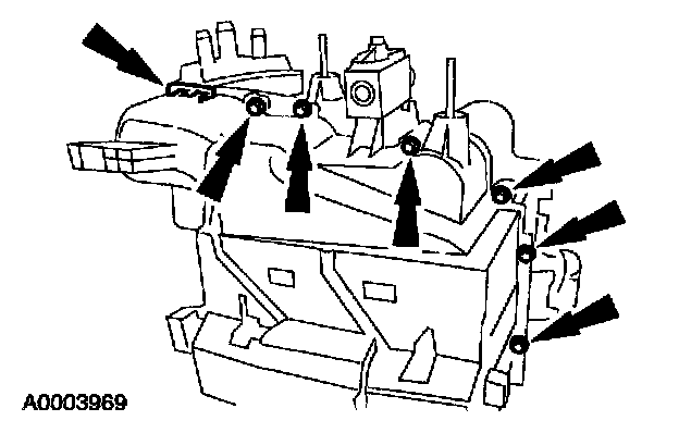5. Remove the nine screws, disengage the clip and separate the evaporator core housing from the air inlet housing.