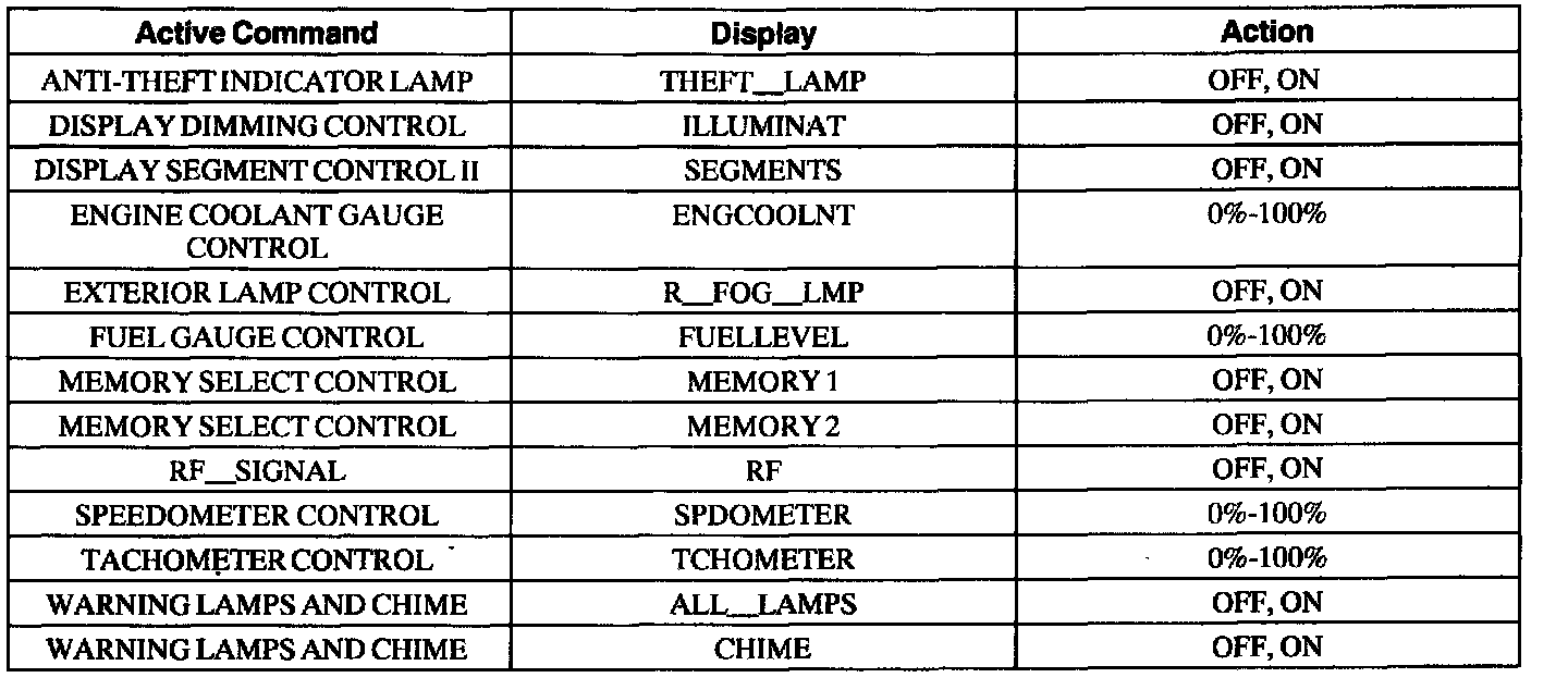 Instrument Cluster Active Command Index