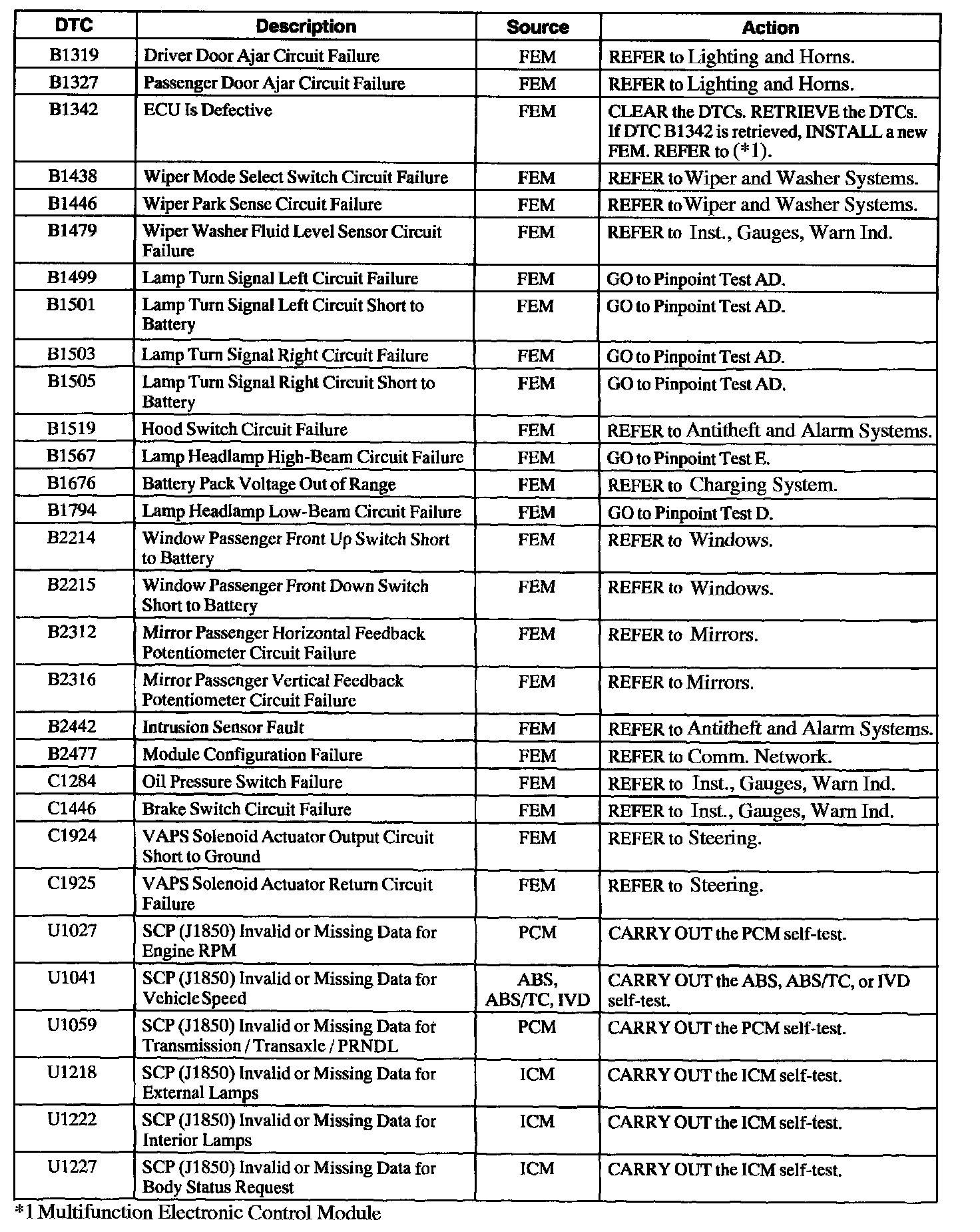Front Electronic Module Diagnostic Trouble Code Index