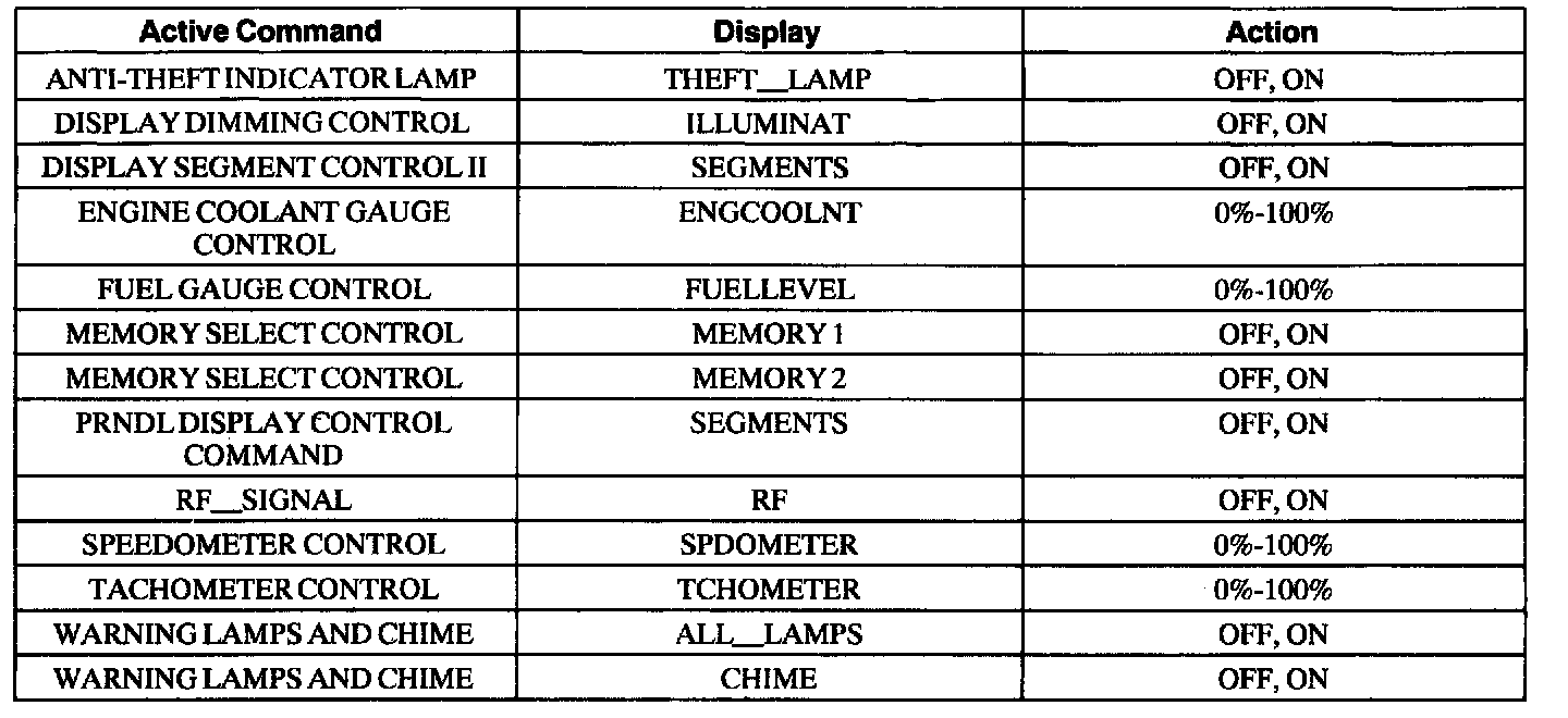 Instrument Cluster Active Command Index