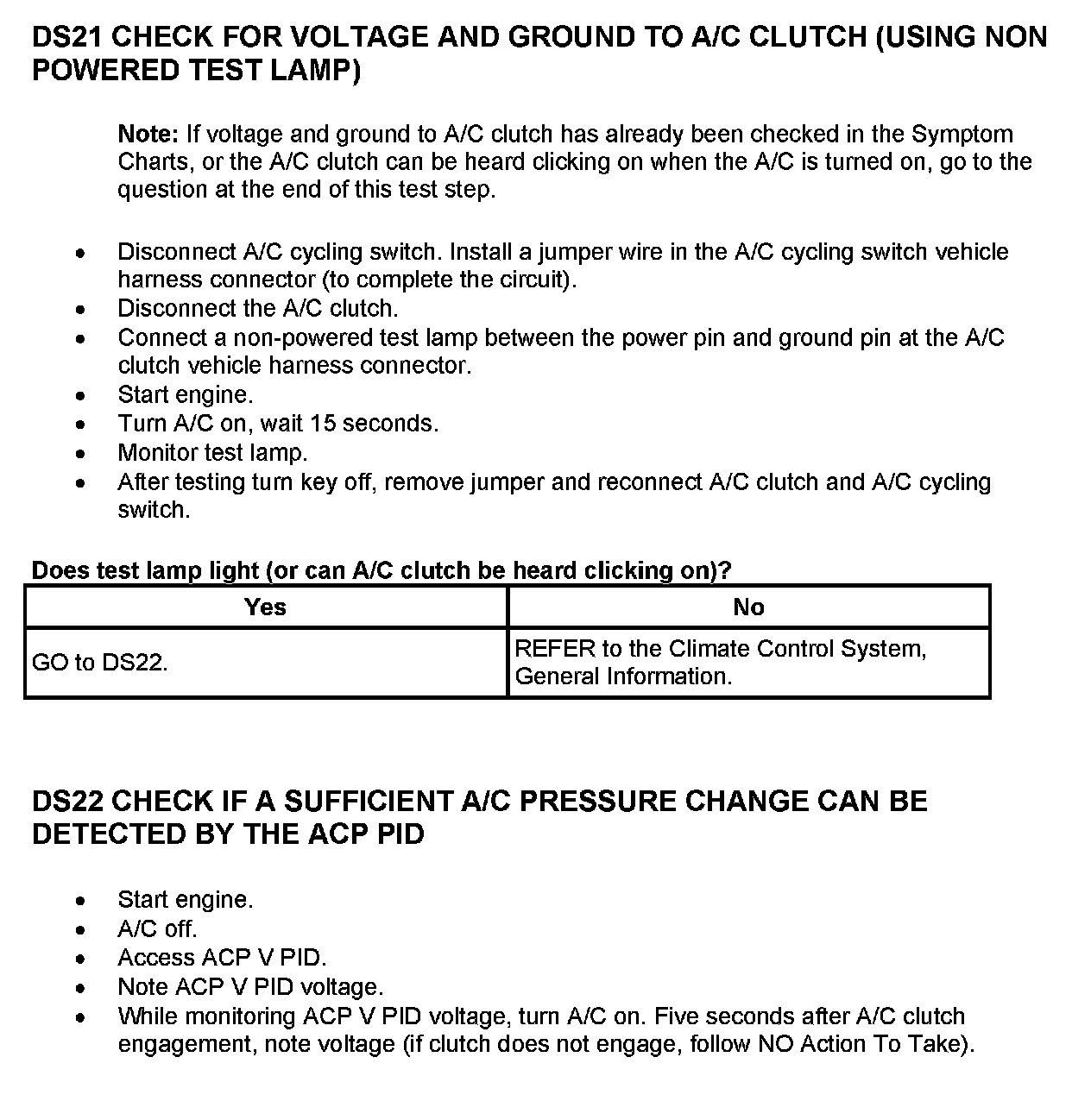 Tests DS: Air Conditioning Pressure (ACP) Sensor