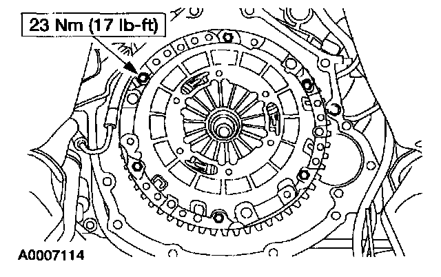 2. Locate the clutch pressure plate on the flywheel dowels and tighten the bolts in a diagonal sequence.