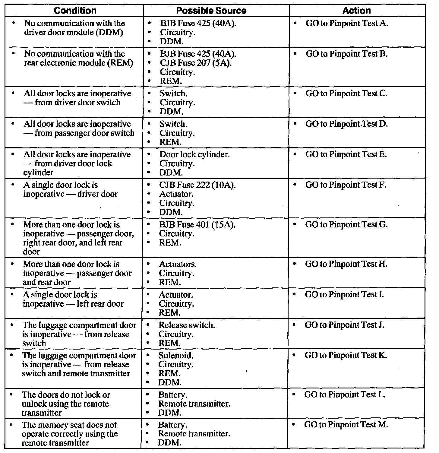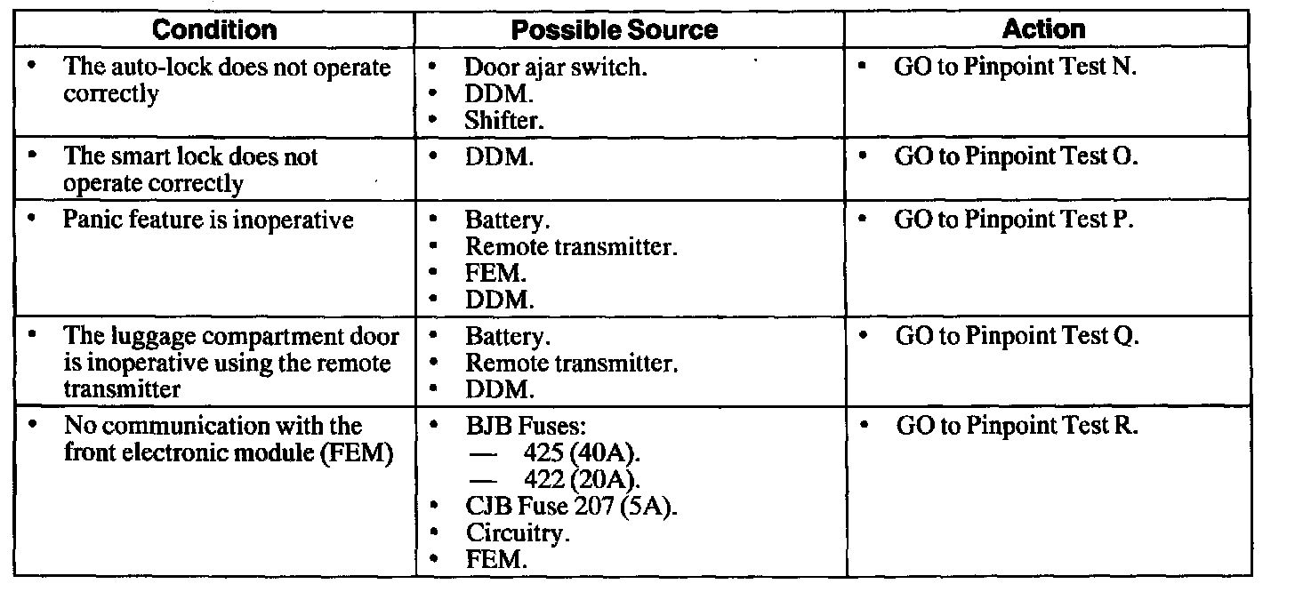 When diagnosing an SSP relay, check that all Systems for that relay are inoperative. Refer to Lighting and horns if: