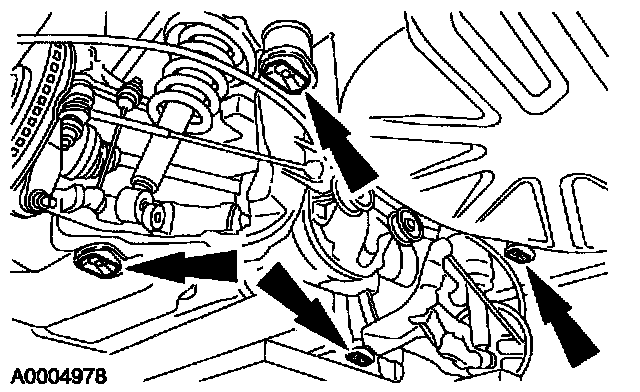 NOTE: If a new rear subframe is to be installed, the differential and halfshafts must be removed prior to removal of the rear subframe. For all other procedures, the differential, halfshafts and rear subframe are to be removed as an assembly.