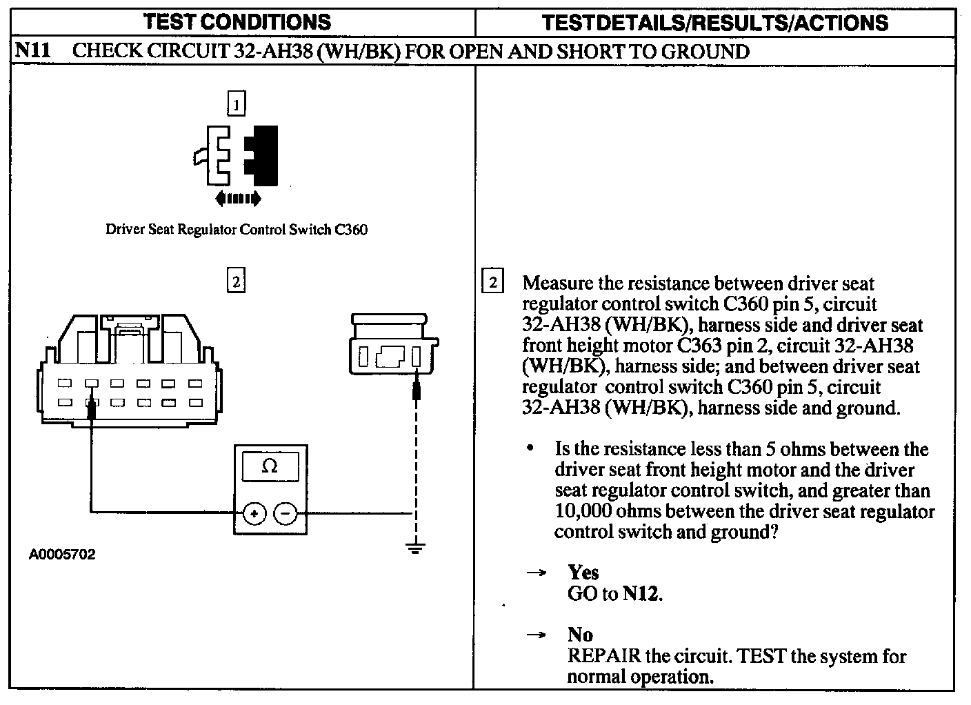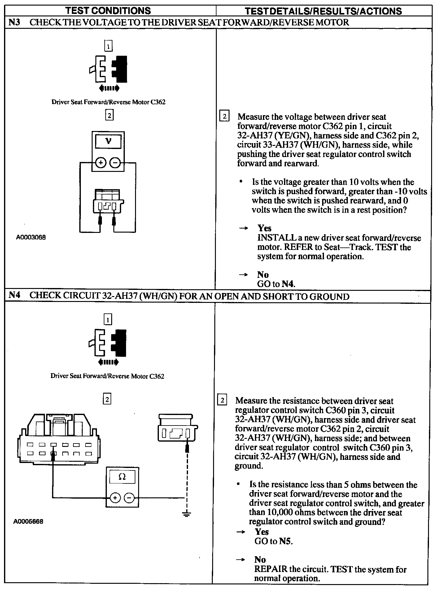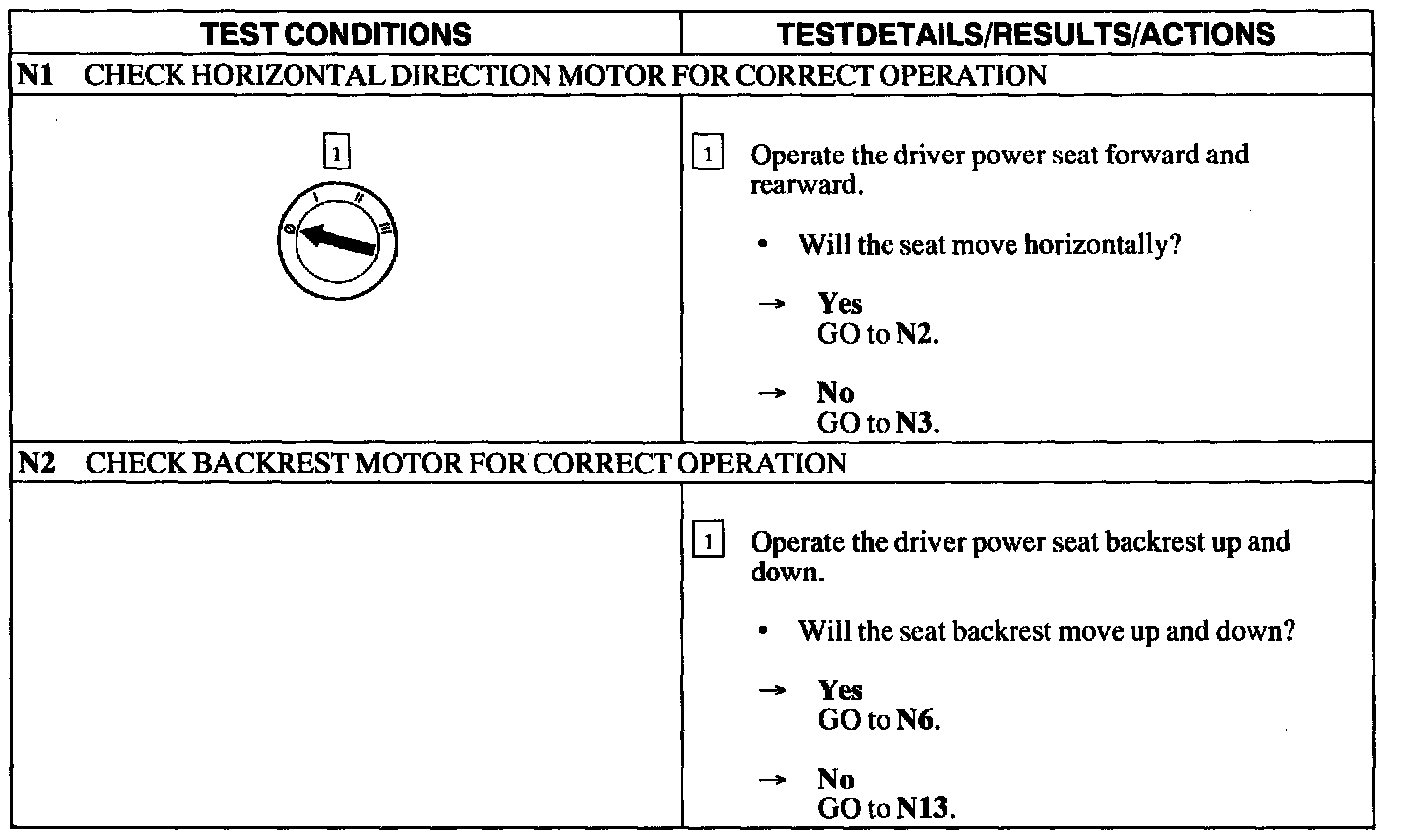 Test N: Power Seat Does Not Move Horizontally/Vertically- Driver