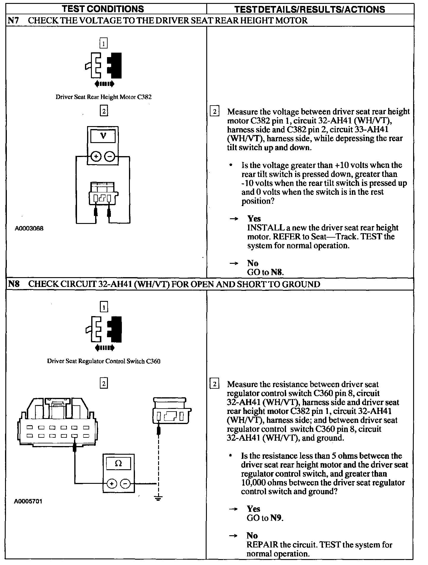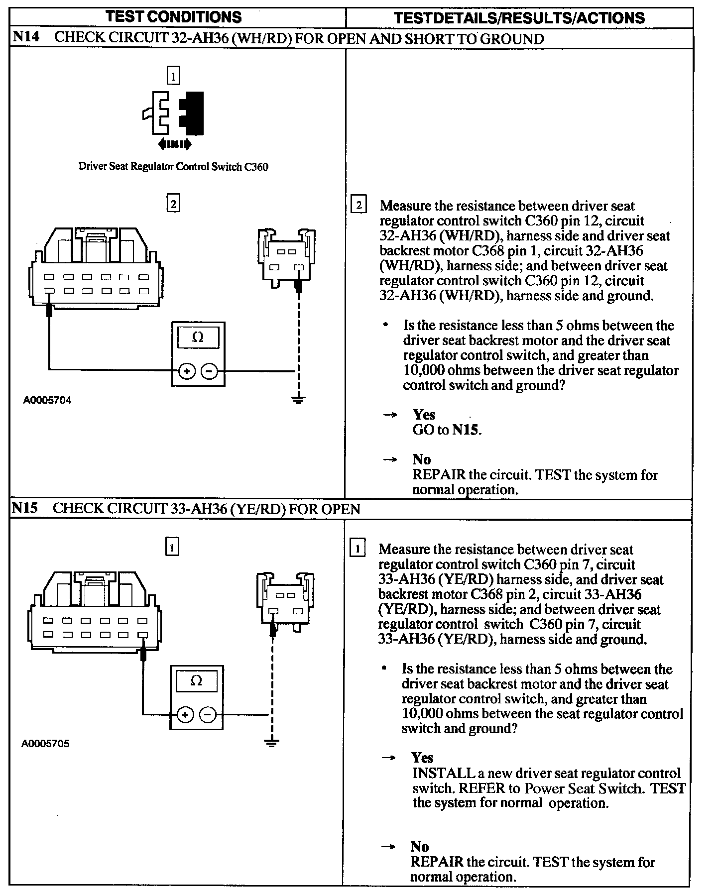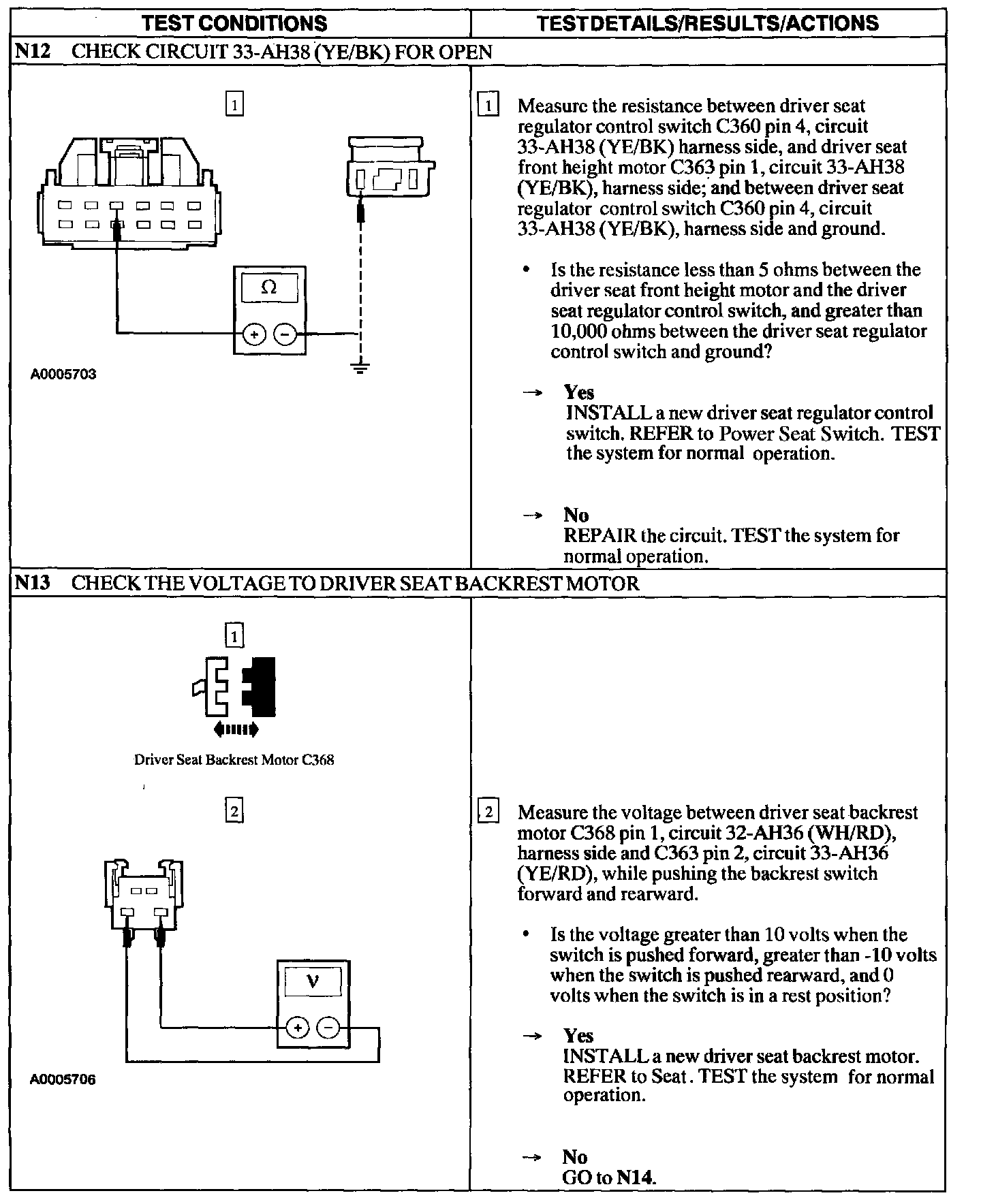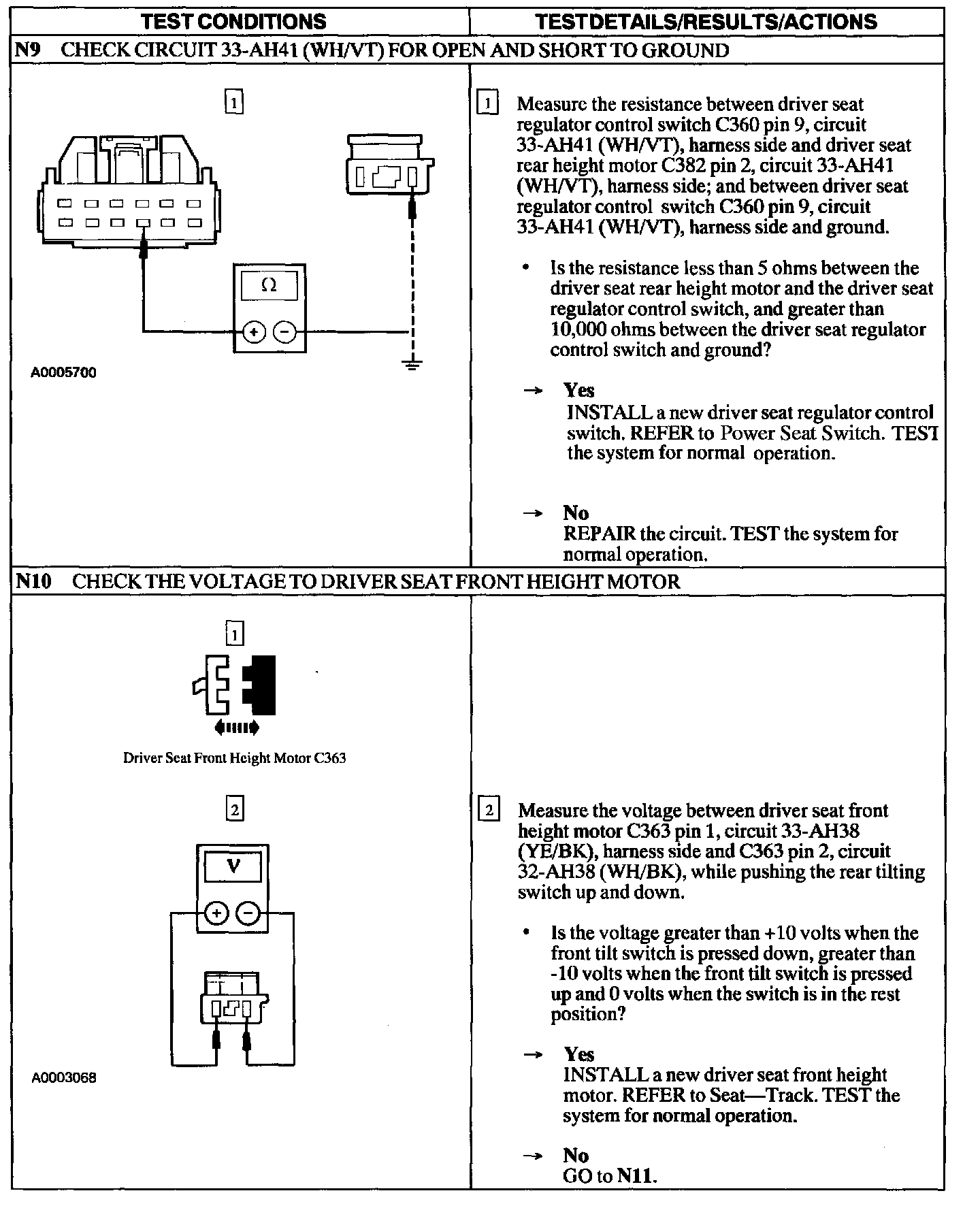 Test N: Power Seat Does Not Move Horizontally/Vertically- Driver