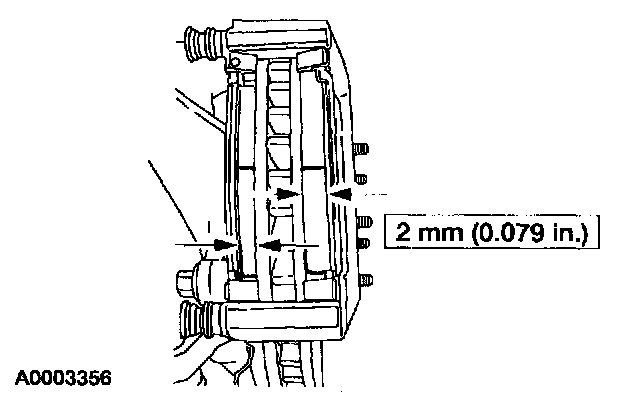 5. CAUTION: Install new pads if worn to or past the specified thickness above the metal backing plate or rivets. Install new pads in complete axle sets.