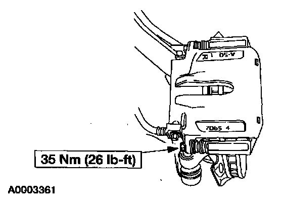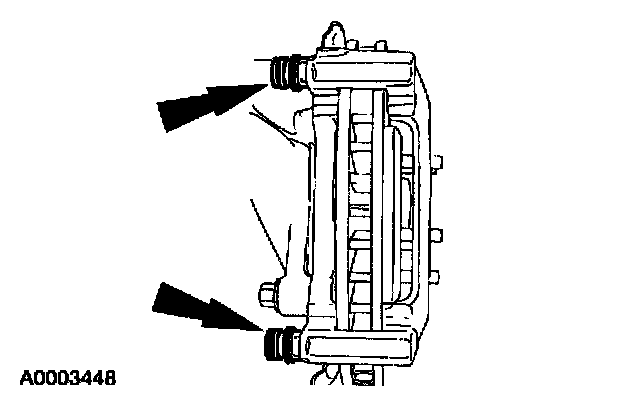 CAUTION: When removing the caliper, never allow it to hang from the brake hose. Provide a suitable support.